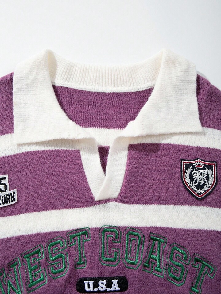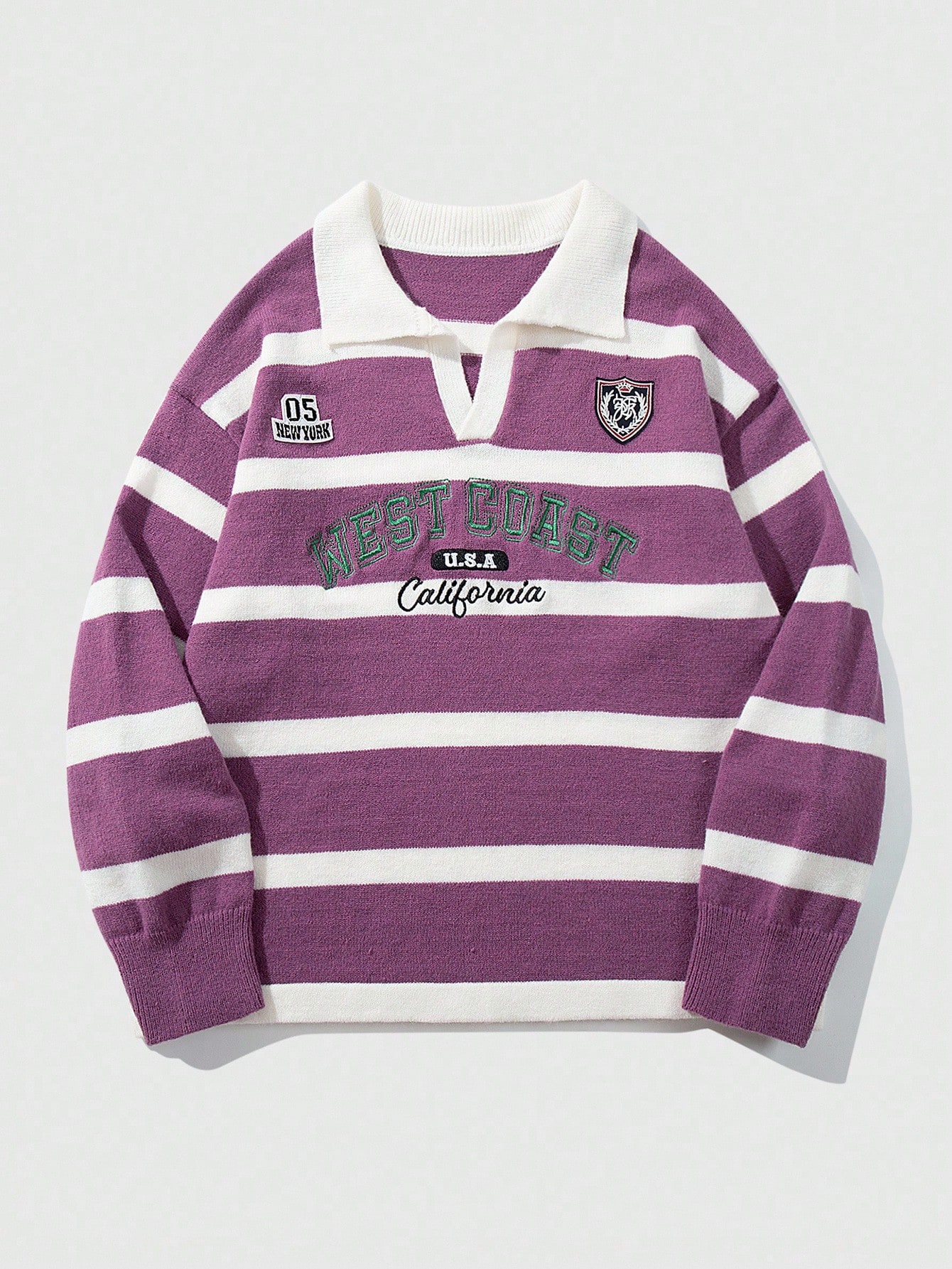 Street Life بلوزة رجالية كاجوال بياقة بولو وأكمام طويلة مطرزة بحرف وخطوط