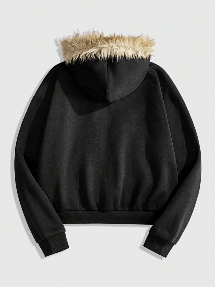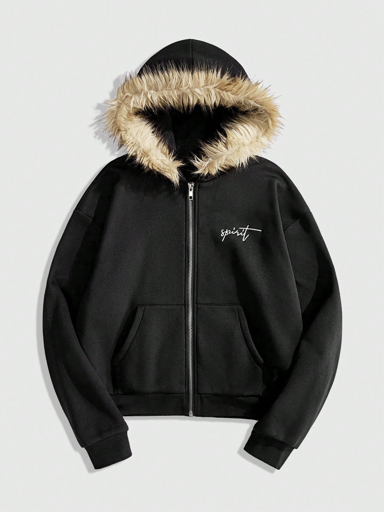 Street Life سترة رياضية كاجوال للرجال بطباعة حرفية ومرقعة، ذات قلنسوة فضفاضة مع سوستة للخريف والشتاء