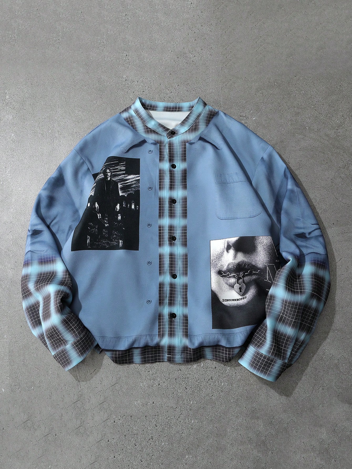 Street Life قميص طباعي بأكمام طويلة بطراز كولدج للرجال في فصل الخريف/الشتاء، موضة الشارع
