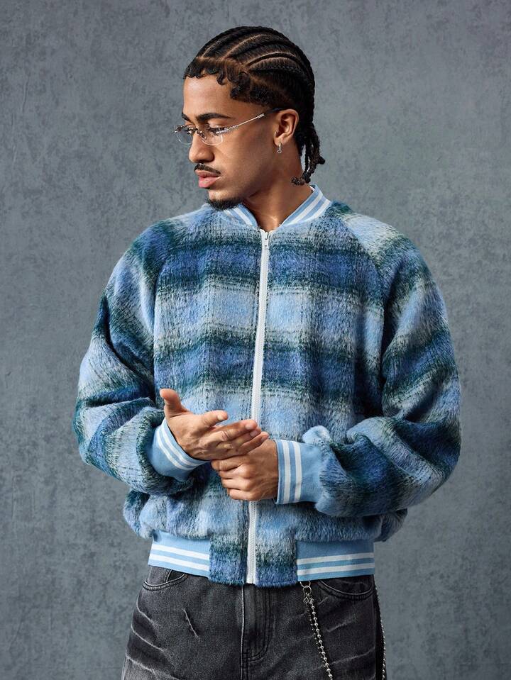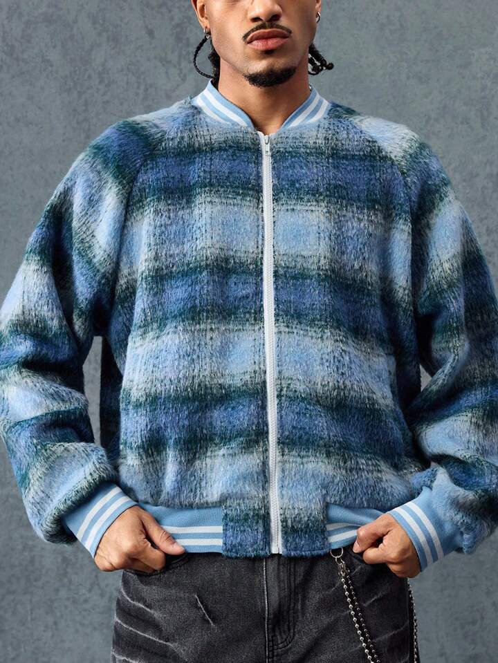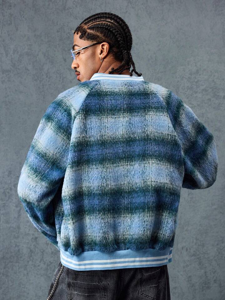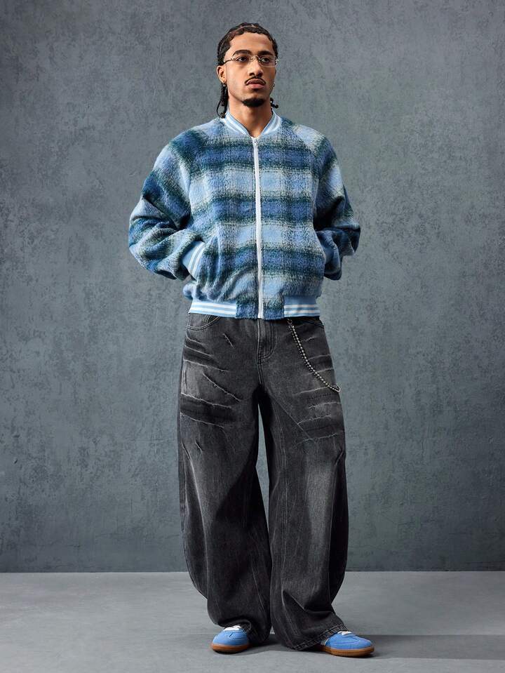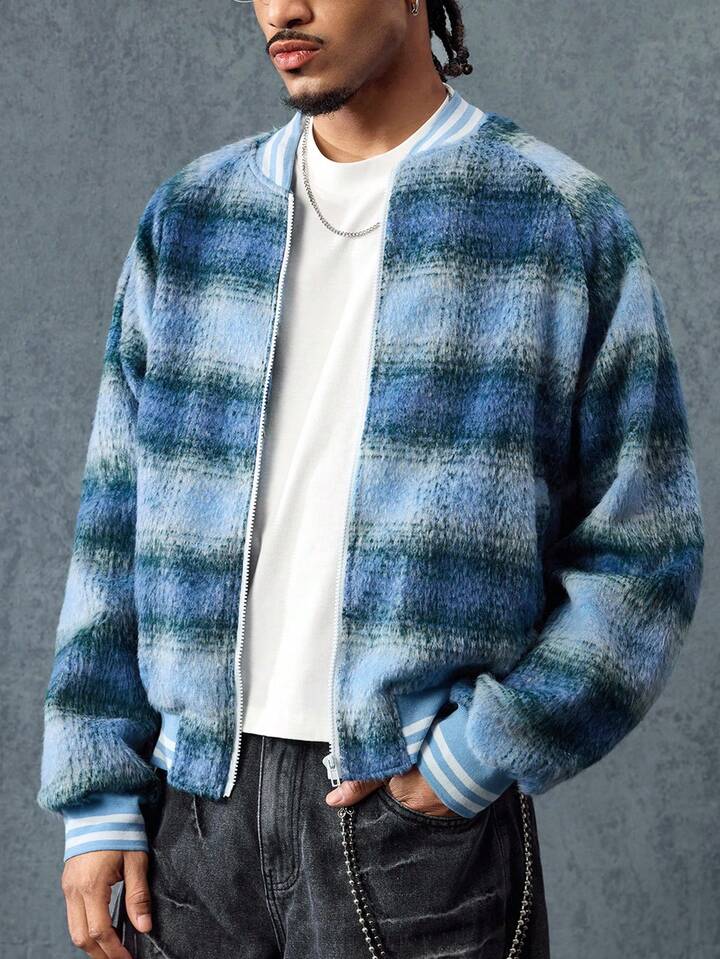 Street Life جاكيت بيسبول من الصوف المرقط للرجال، طراز الملابس الشارعية