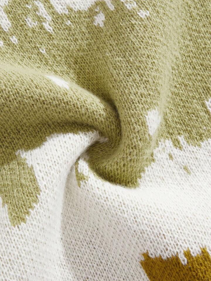 Street Life كنزة صوفية رجالية بطبعة باتيك ذات رقبة مستديرة وأكمام طويلة فضفاضة غير رسمية، موسم الخريف/الشتاء