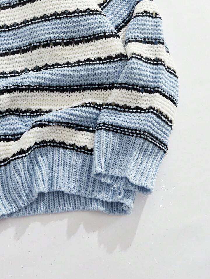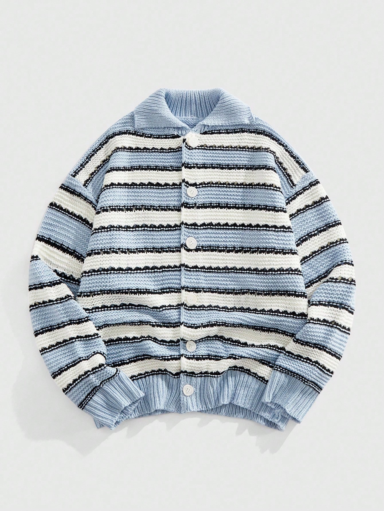 Street Life كارديجان محبوك مخطط أزرق وأبيض للرجال، خريف وشتاء
