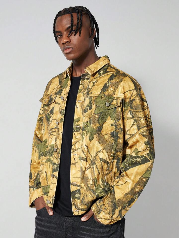 Street Life جاكيت جينز للرجال ذات طبعة أشجار الكاموفلاج، موسم الخريف