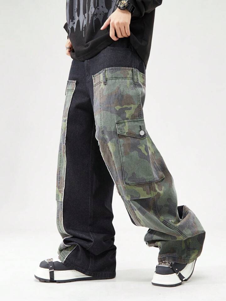 Street Life بنطال جينز كاجوال ذو جيوب كارجو بطبعة الكامفلاج للرجال