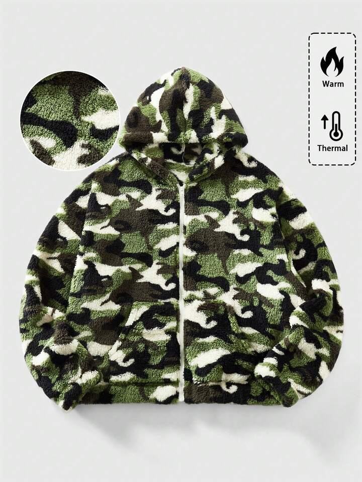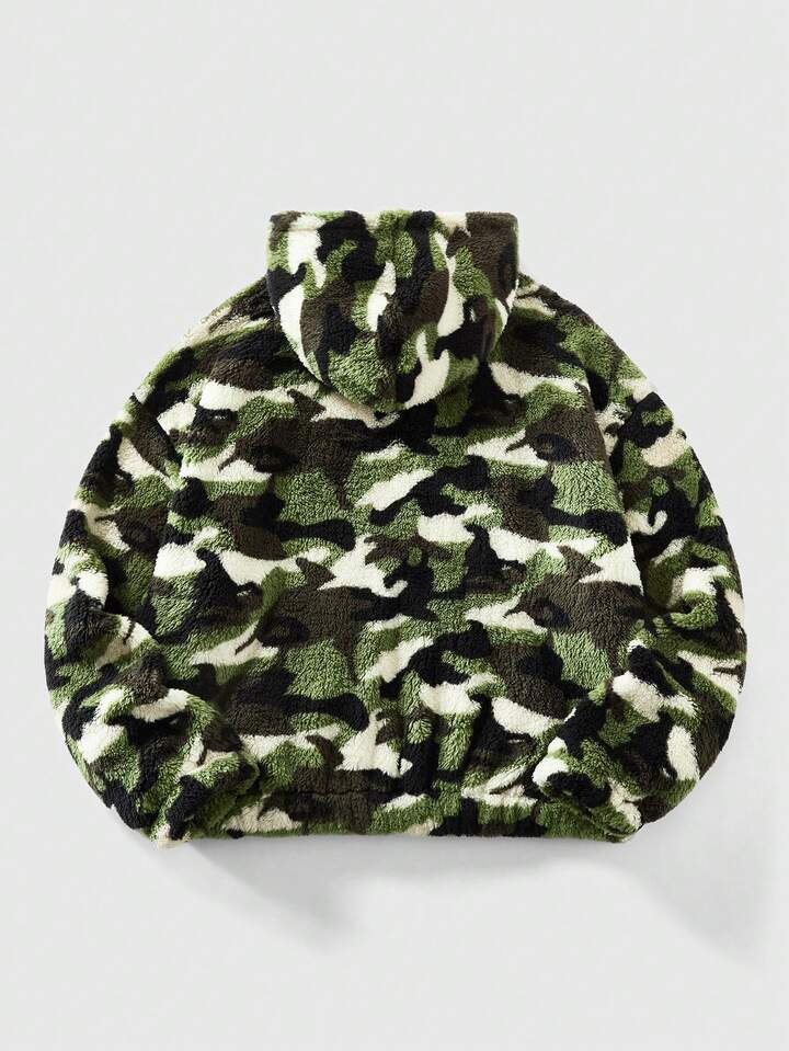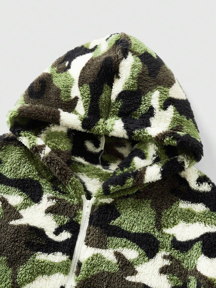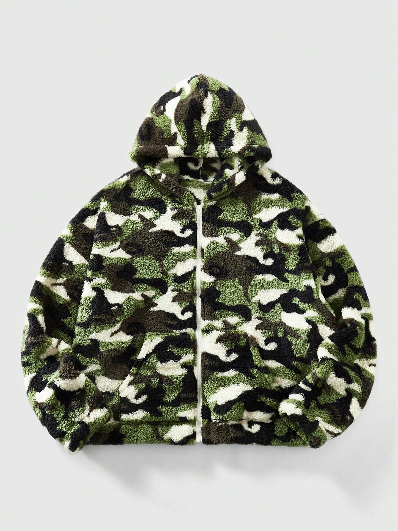 Street Life هودي بسحاب من الفليس بنمط الكامو للرجال، خريف/شتاء