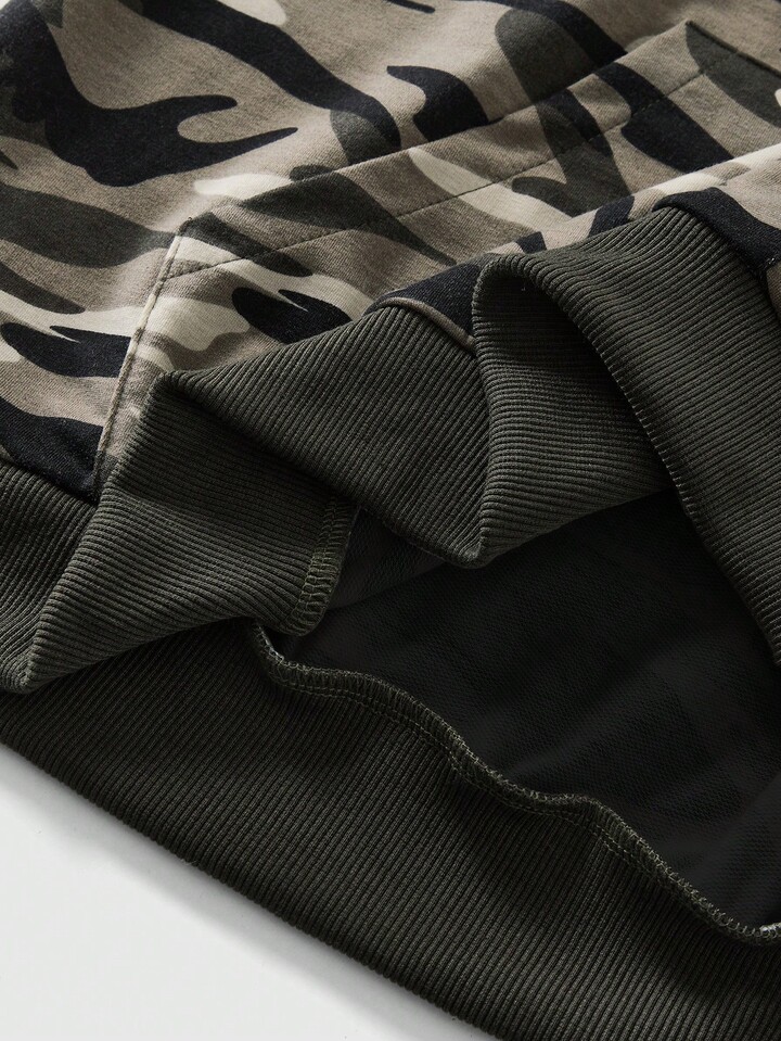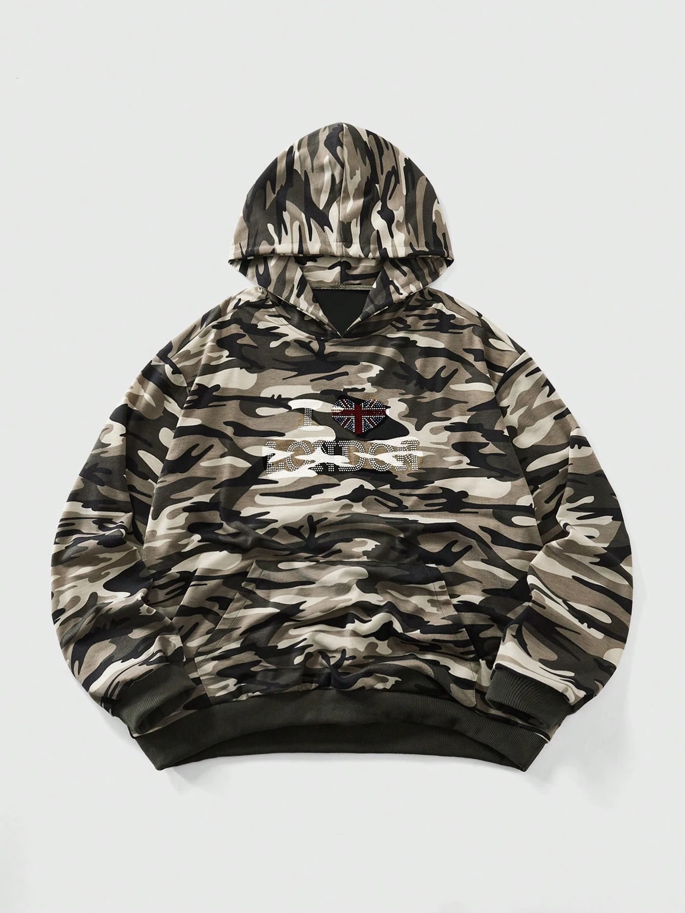 Street Life هودي كاجوال بأكمام طويلة مزين بالراين ستون وشعار الكامفلاج للرجال