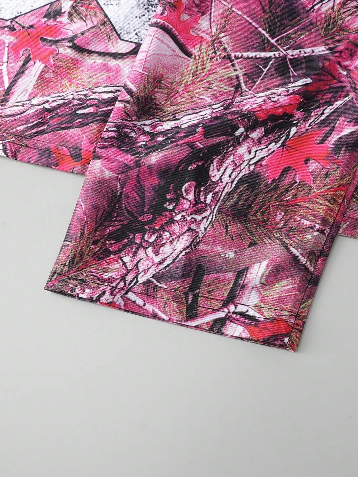 Street Life تي شيرت جيرسيه ذو أكمام طويلة بطبعة كامو أغصان متهالكة للرجال، ملابس شارع