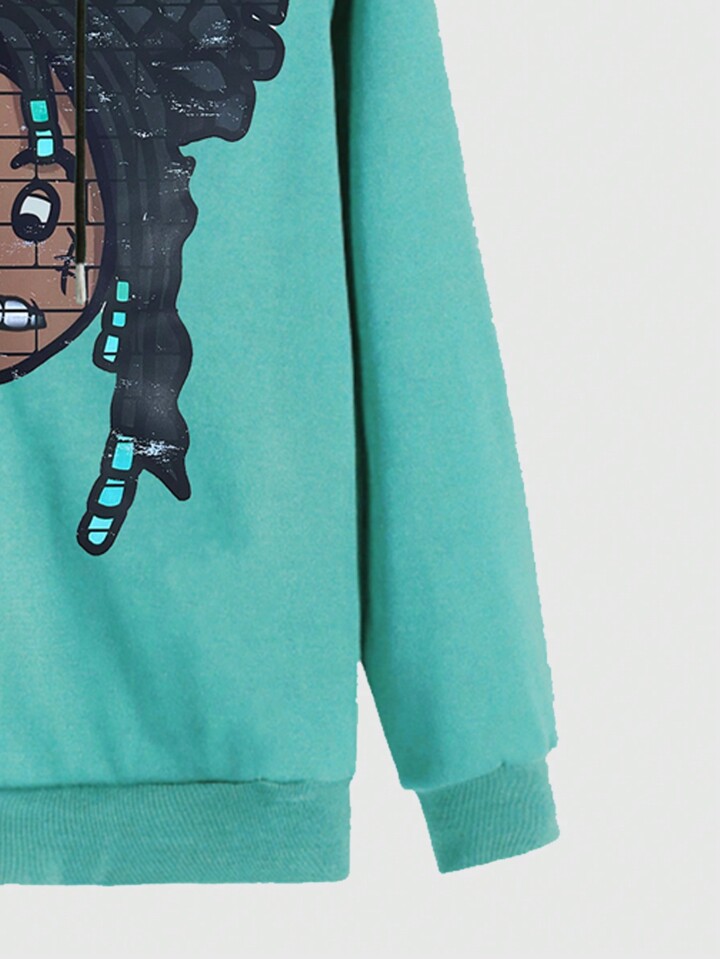 Street Life سترة هوديي رجالية كاجوال بسحاب بطباعة كرتونية، خريف/شتاء