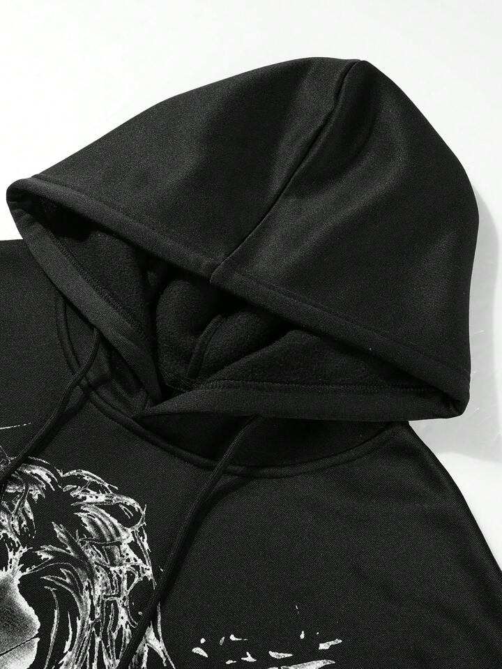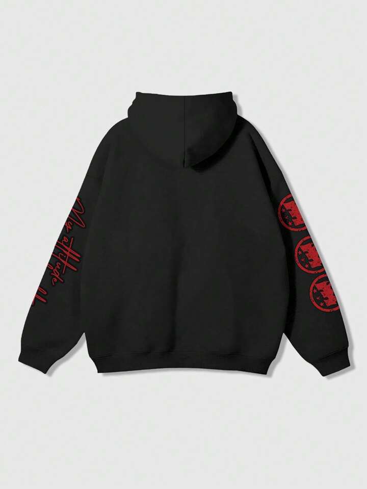 Street Life هوديحلوجالكاجوال للرجال بطباعة حرف وشخصية، خريف / شتاء