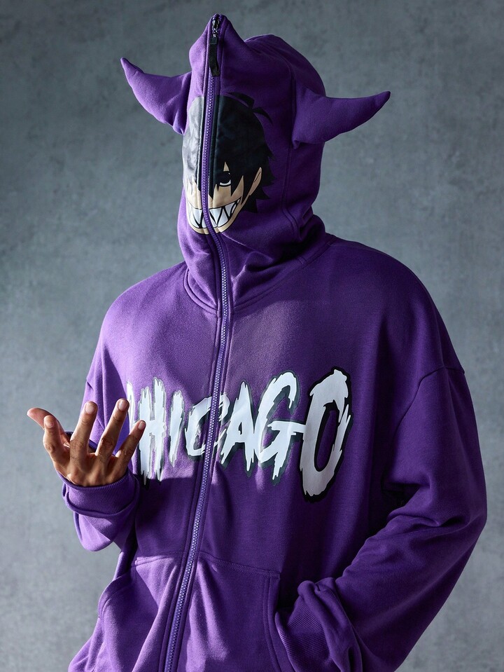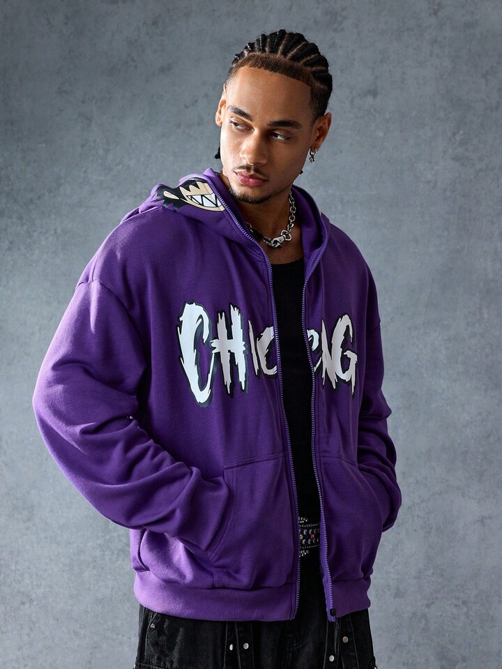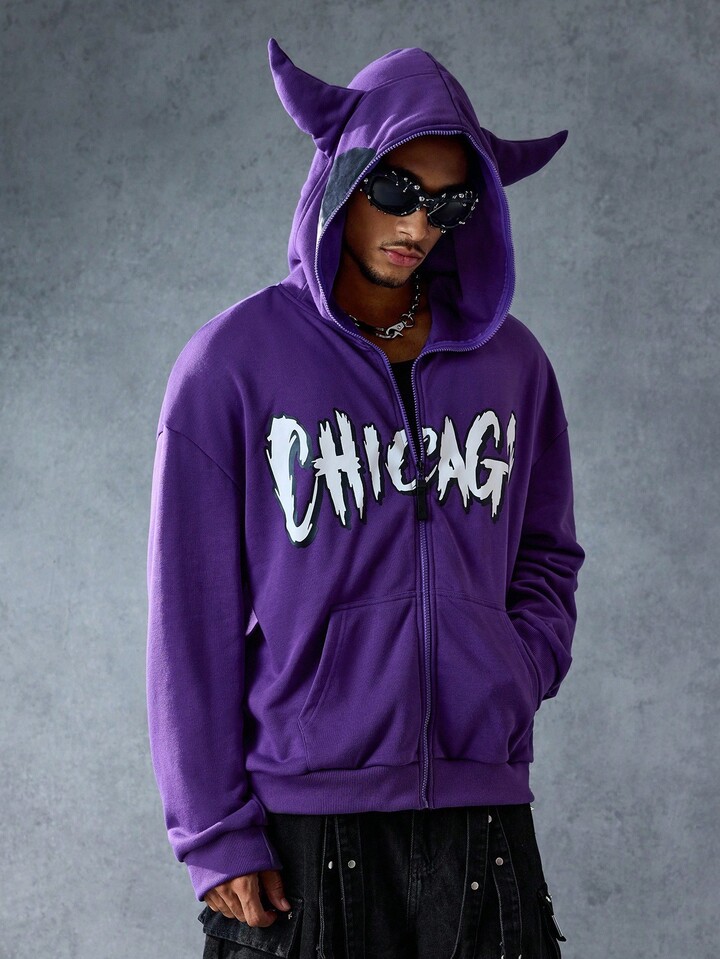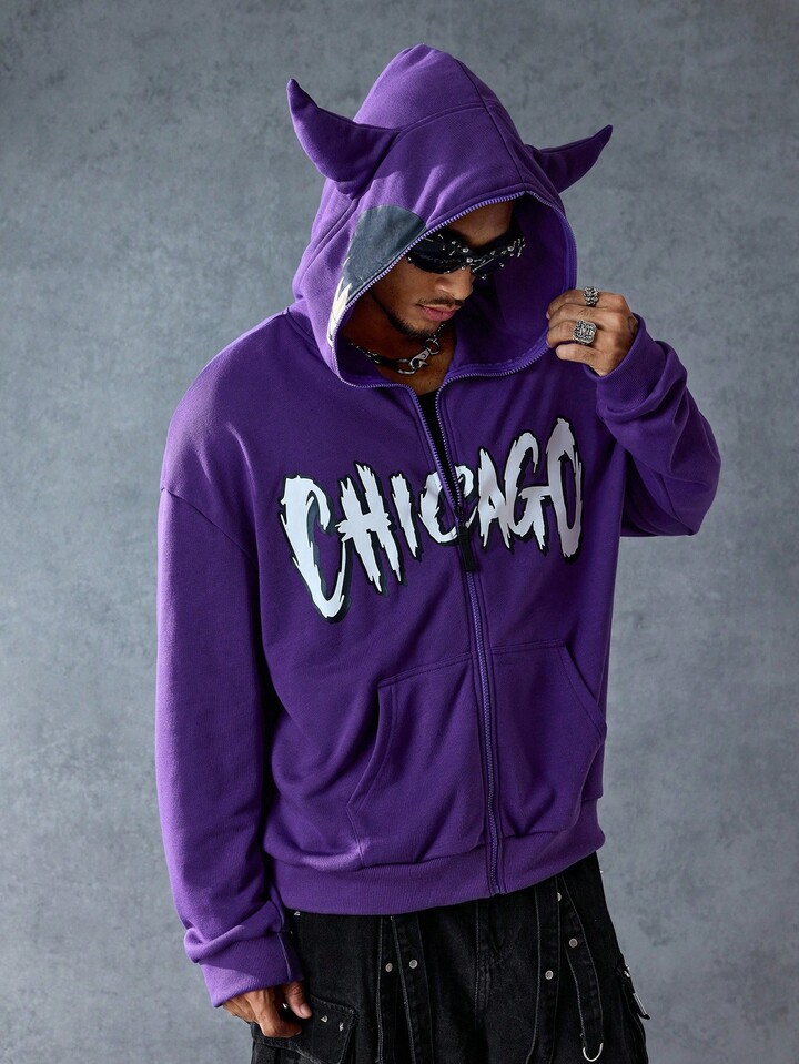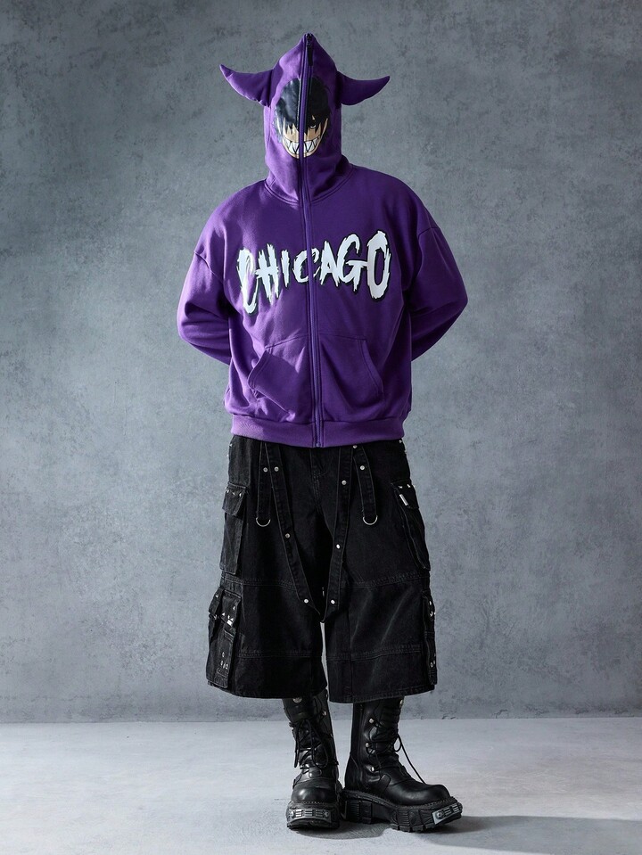 Street Life بلوفر رجالي كاجوال يومي مطبوع بنمط الحرف مع سحاب، خريف