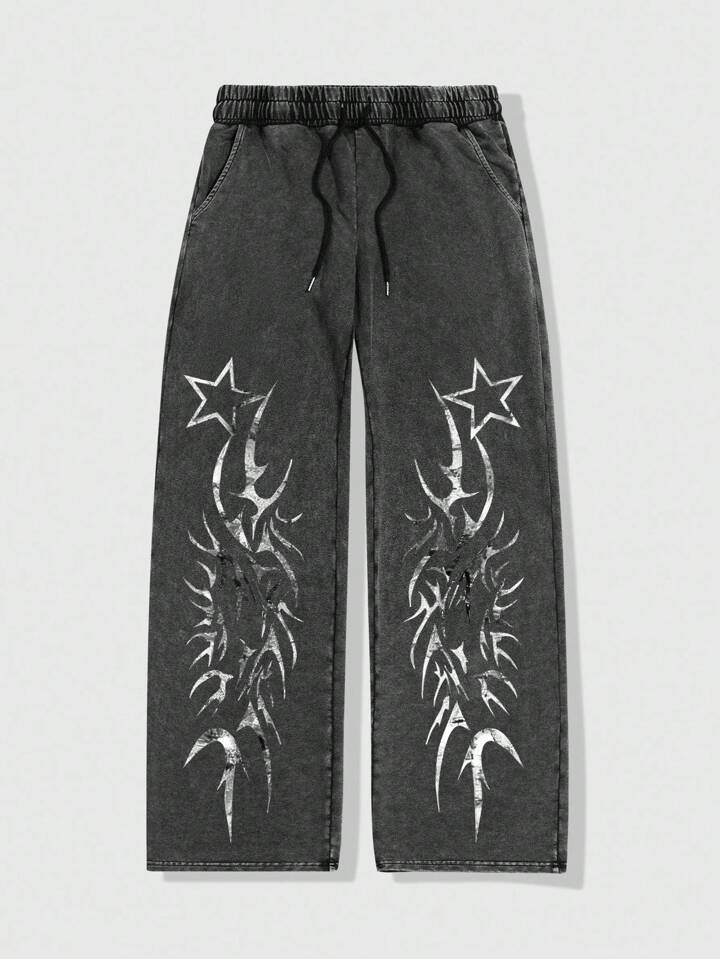 Street Life بنطلون رياضي رجالي كاجوال يومي، ذو خصر بسحاب وساق مستقيمة، مطبوع بنجوم