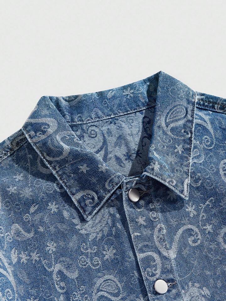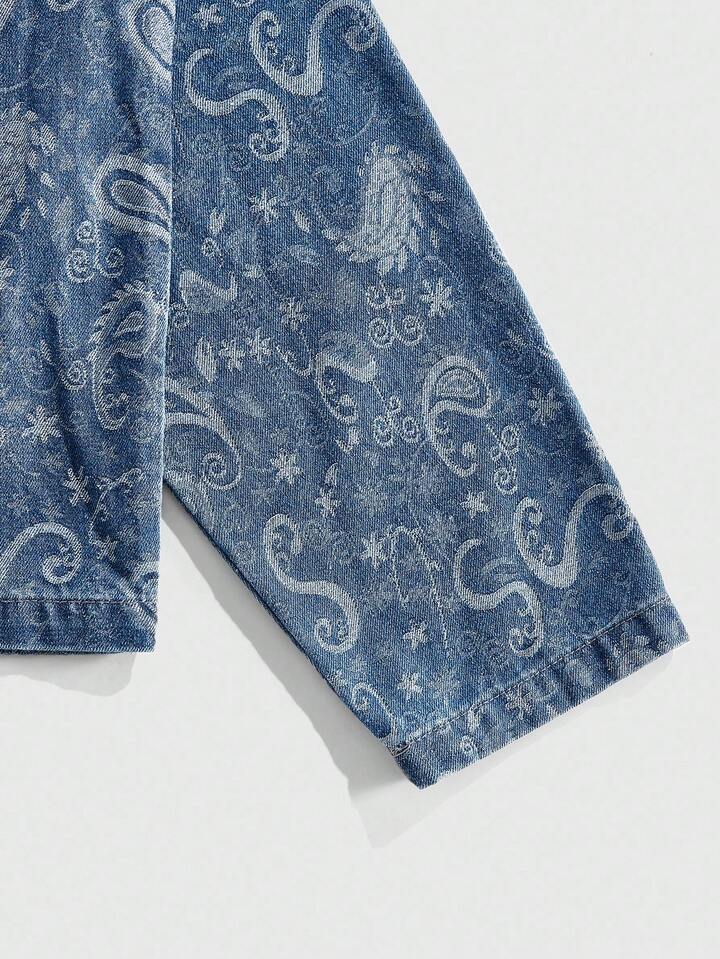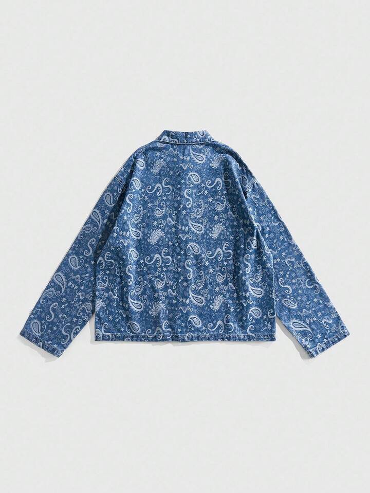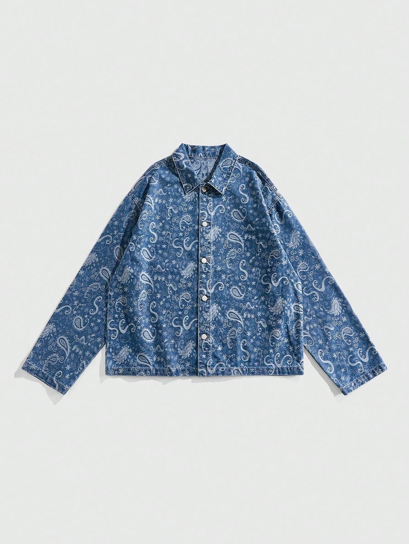 Street Life جاكيت جينز كاجوال للرجال مع طباعة الباييت، أحادية الصدر، طويلة الأكمام، للخريف