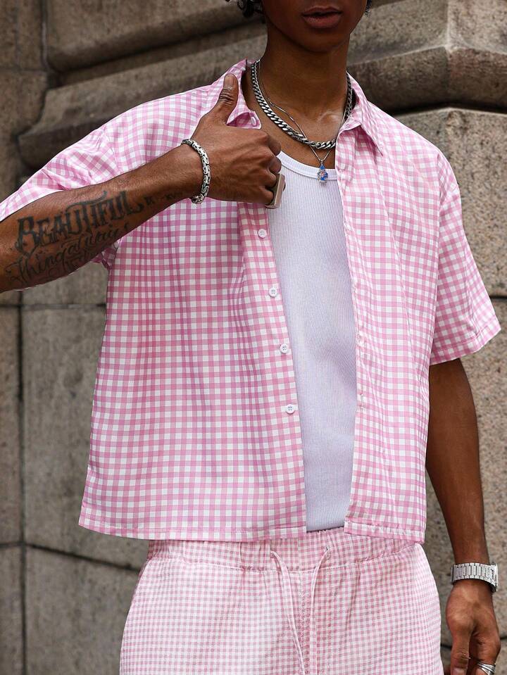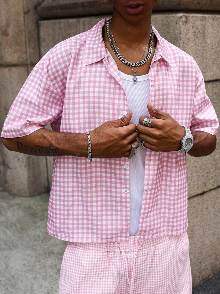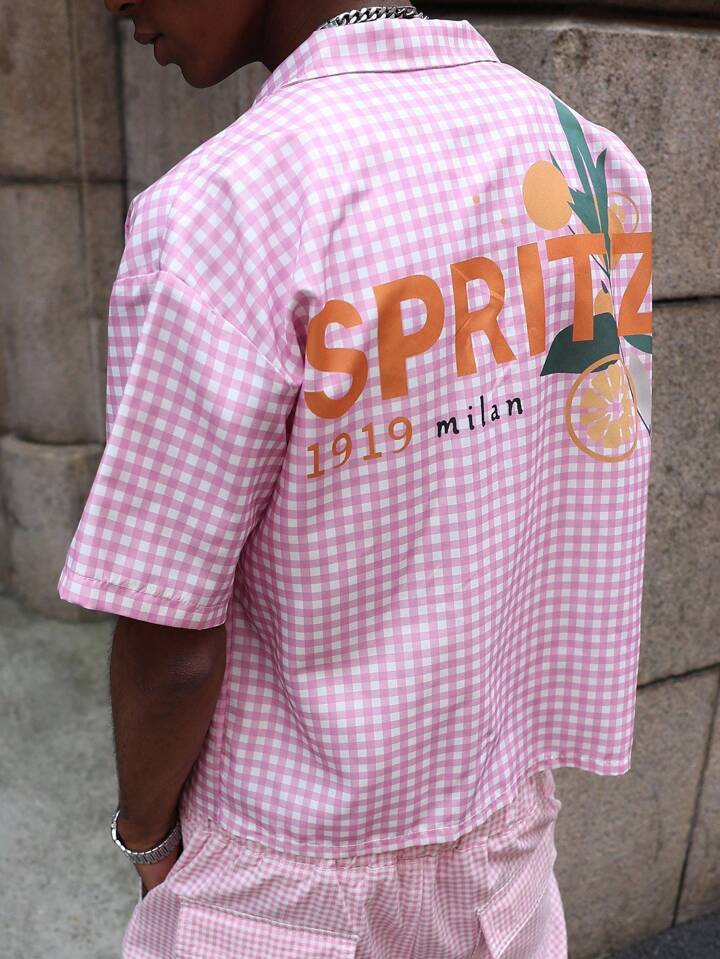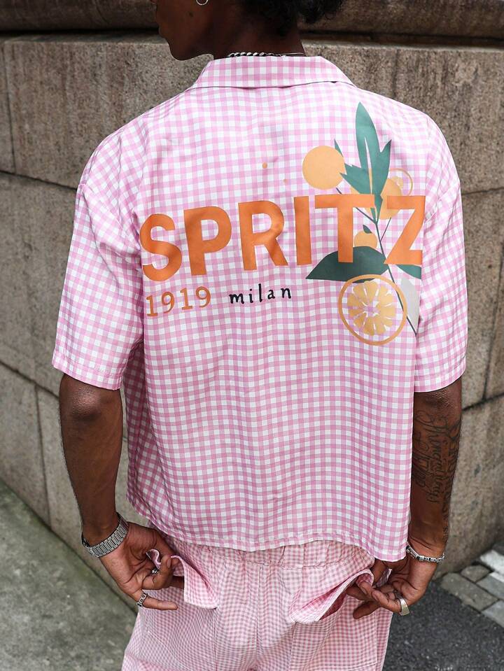 Street Life قميص كاجوال رجالي مطبوع عليه حرف، أكمام قصيرة، رسمي