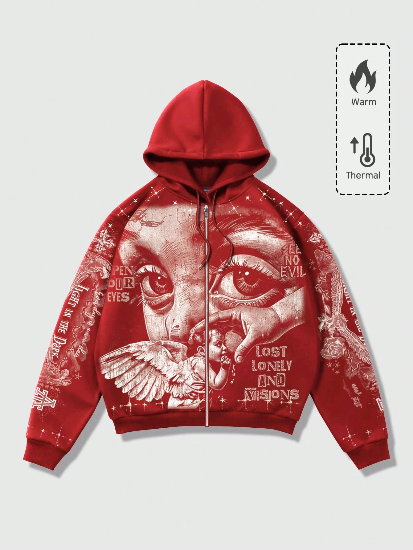Street Life بلوزة رياضية برباط وسحاب مطبوع عليها طباعة ملاك الشارع الكاجوال للرجال، دافئة للخريف/الشتاء