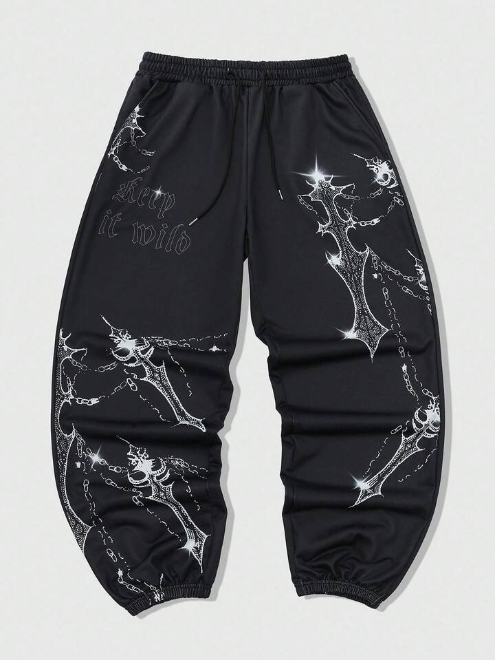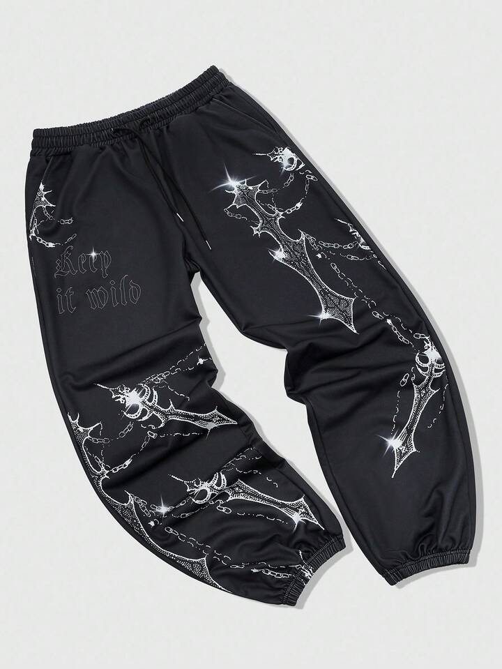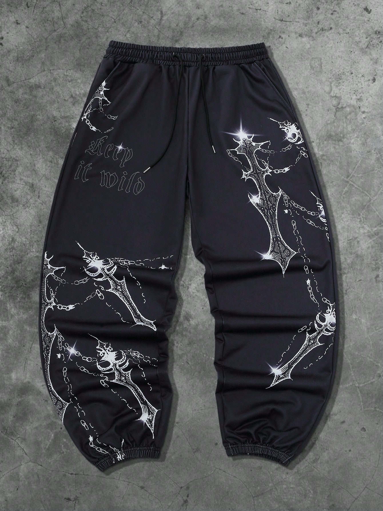 Street Life بنطلون جوجر بخصر مربوط بسلسلة وطباعة شعار بطراز الموضة الكاجوال والشارع الرائج للرجال
