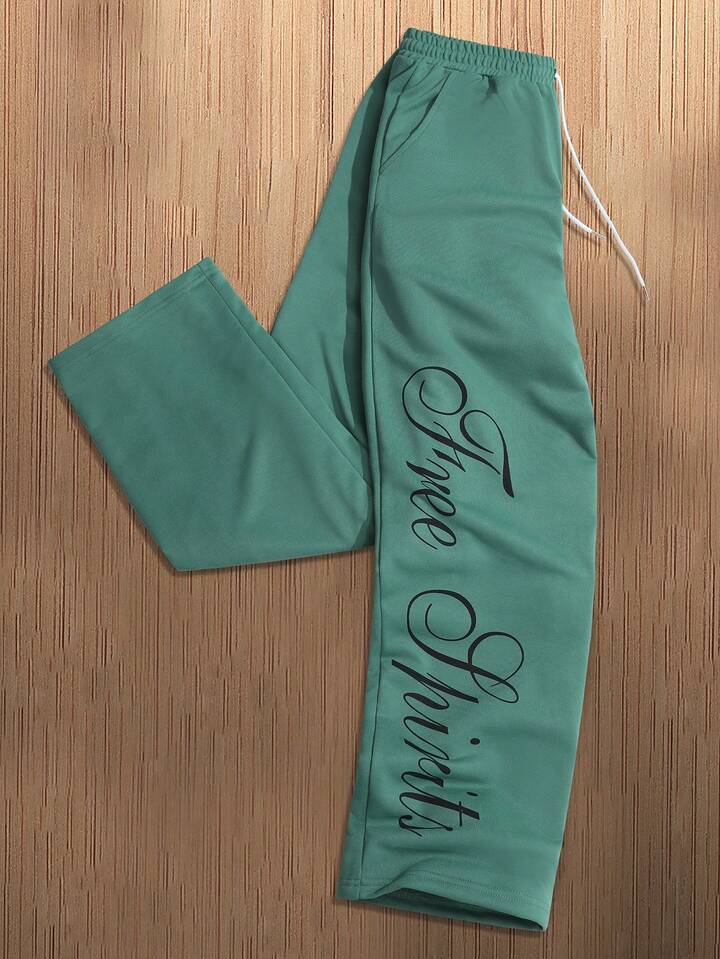 Street Life بنطلون رياضي كاجوال للرجال مطبوع عليه رسومات إنجليزية، خريف/شتاء