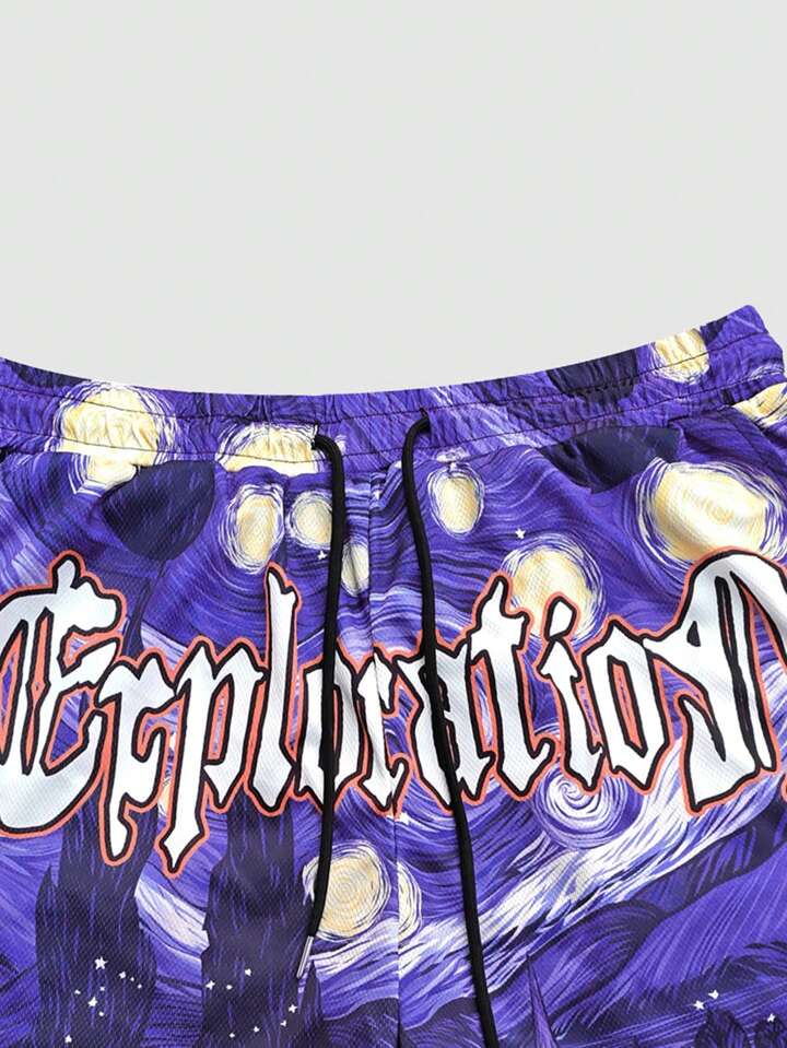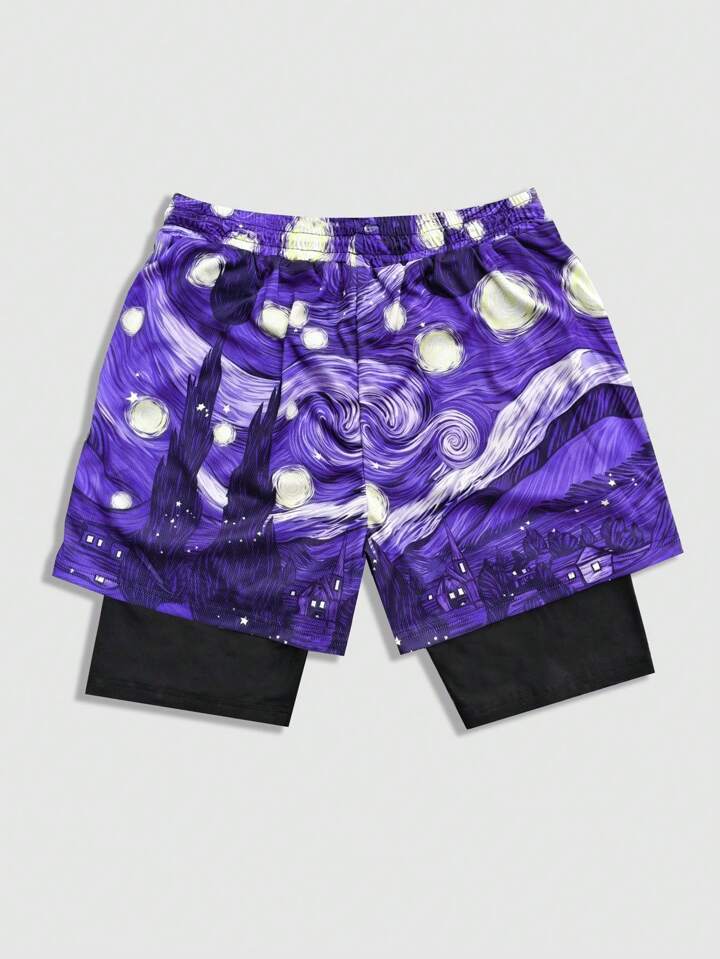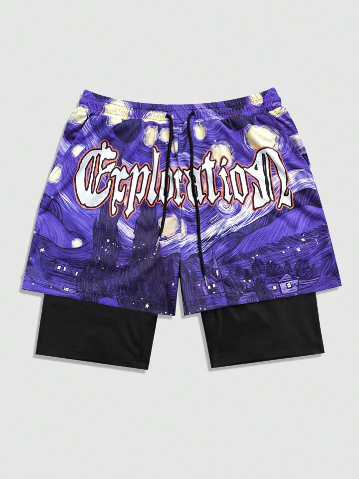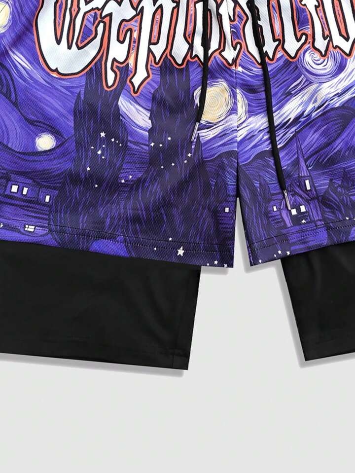 Street Life شورت بسكتبول كاجوال 2 في 1 للرجال مع طباعة رسم وخصر رباط