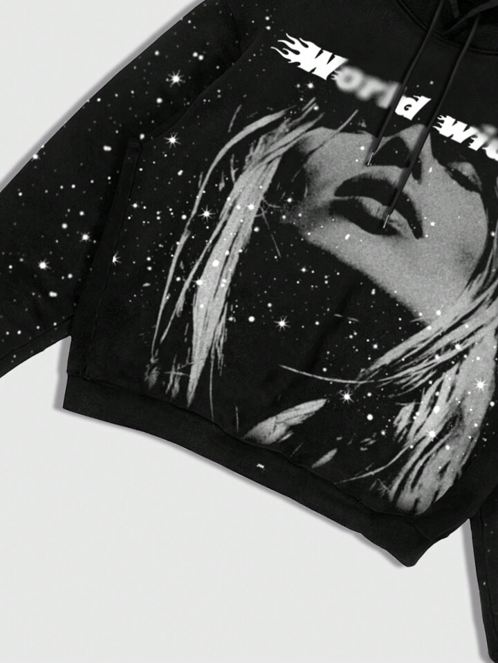 Street Life سترة رياضية رجالية كاجوال مطبوع عليها صورة وكتابة، مع كابوتشينو قابل للسحب، موسم الخريف