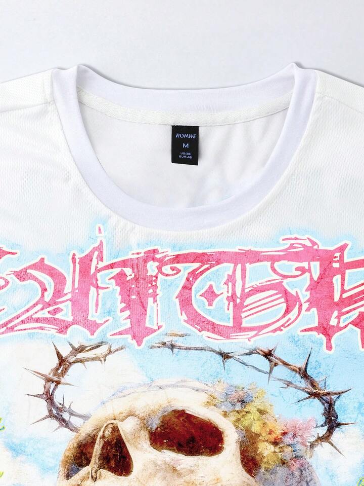Street Life تي شيرت رجالي كاجوال بطبعة جمجمة وياقة مستديرة وأكمام قصيرة