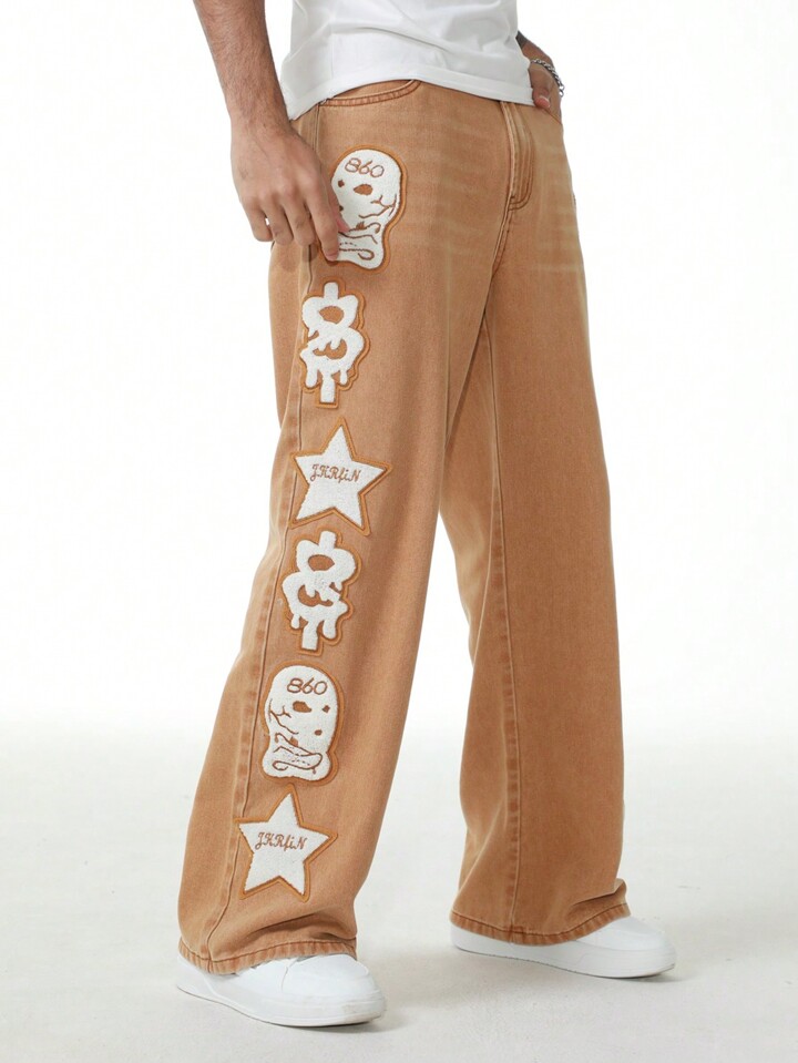 Street Life جينز ملائم بارتخاء مطرز بنجوم لرجال الكاجوال