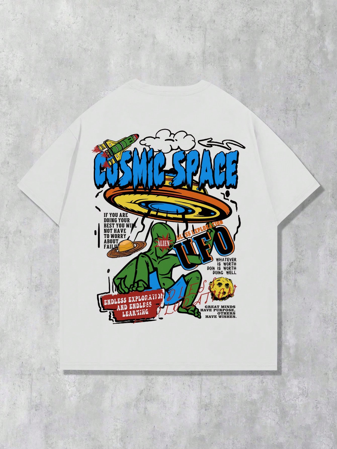 Street Life تي شيرت رجالي كاجوال بطباعة شعار، ياقة دائرية، أكمام قصيرة