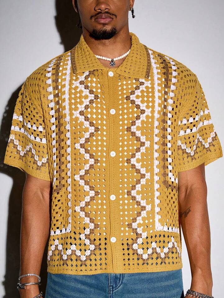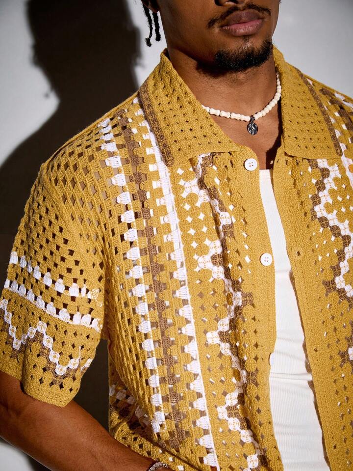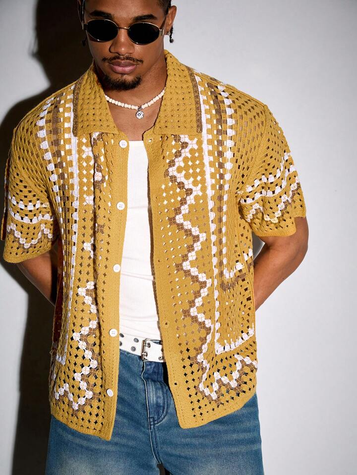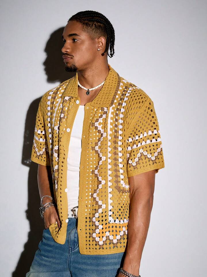 Street Life كارديجان رجالي كاجوال قصير الأكمام من القماش المحبوك للعطلات