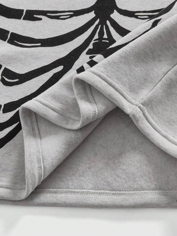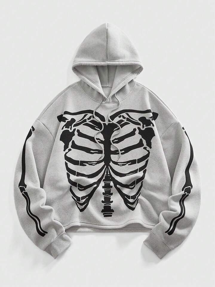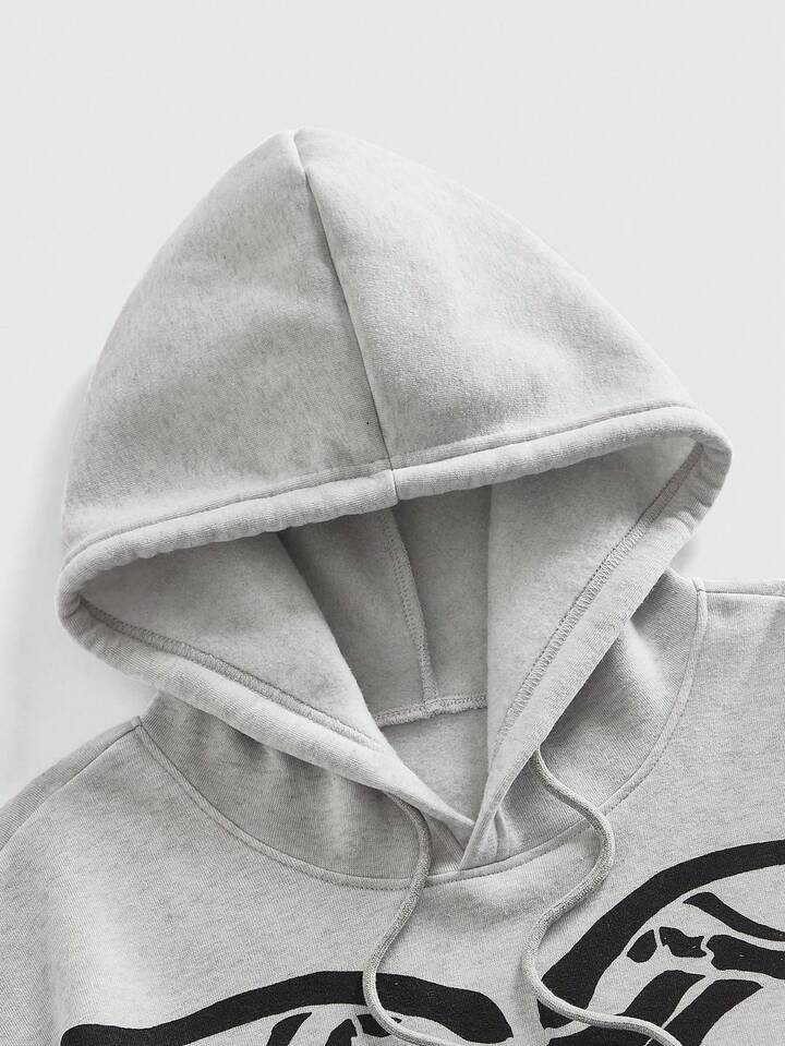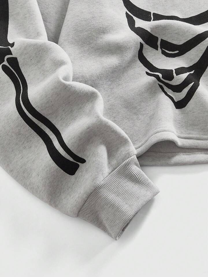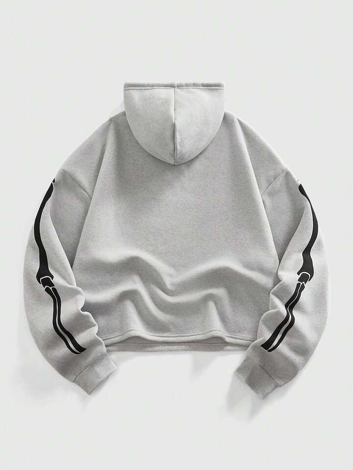 Street Life بلوفر هودي كاجوال طويل الأكمام مطبوع بطبعة الجمجمة للرجال