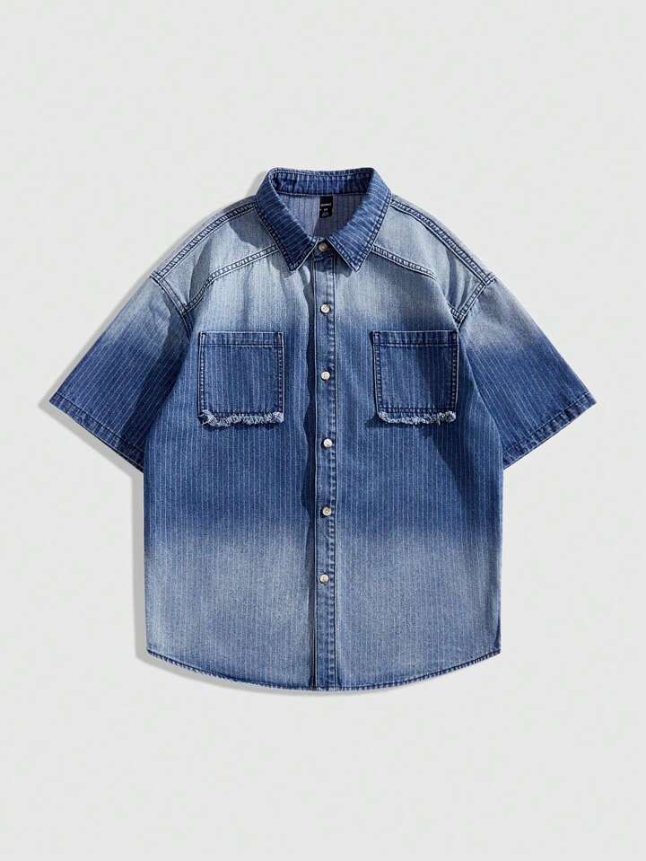 Street Life قميص جينز قصير الأكمام للرجال الكاجوال باللون المتدرج المغسول