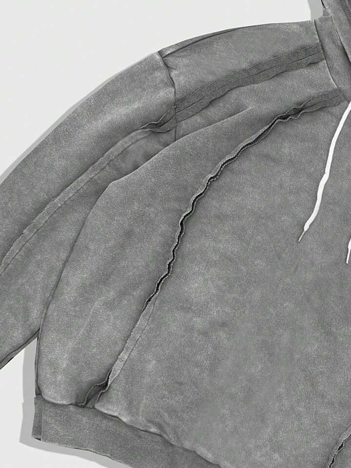 Street Life هودي كاجوال مغسول فضفاض بياقة منسدلة وسحاب، خريفي