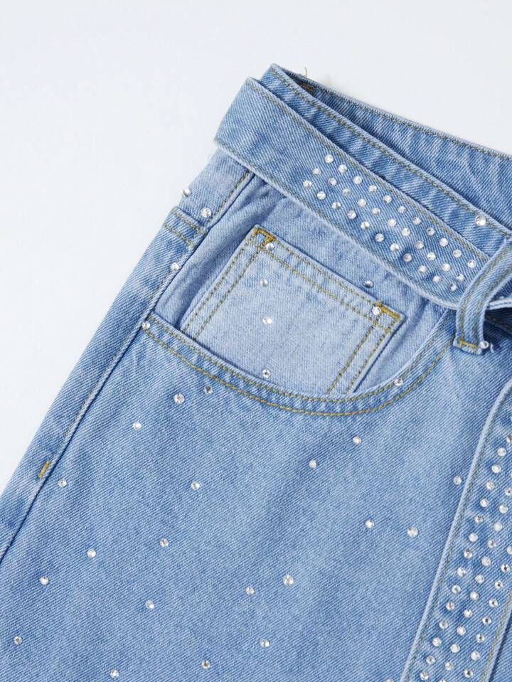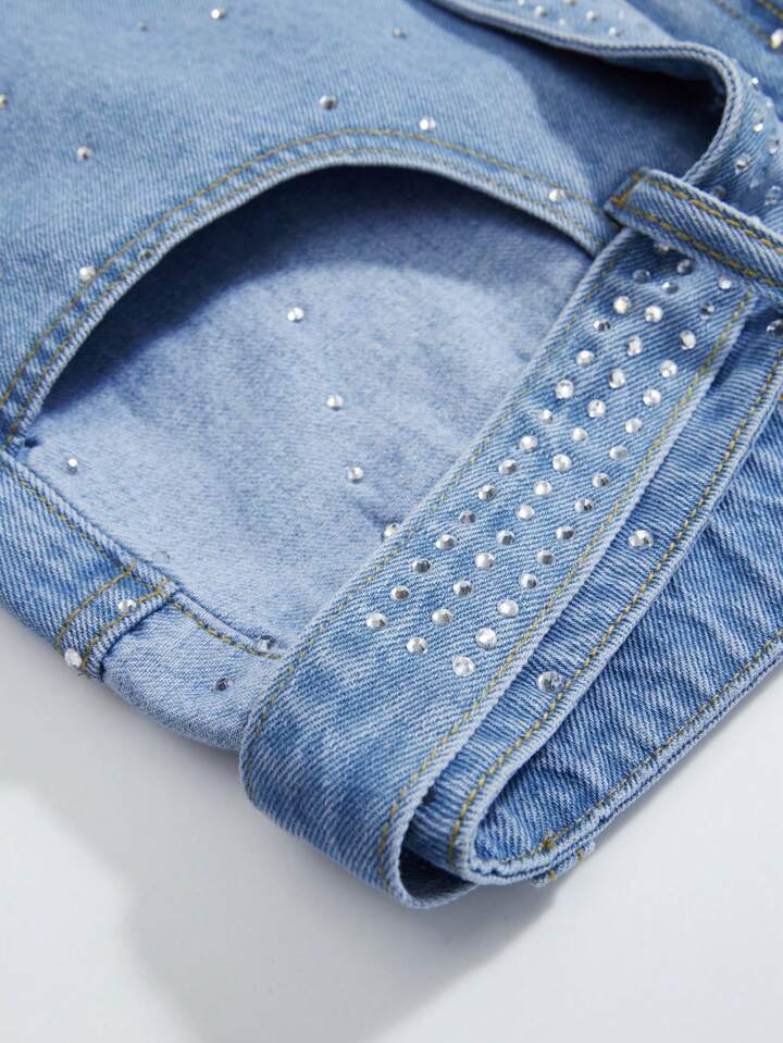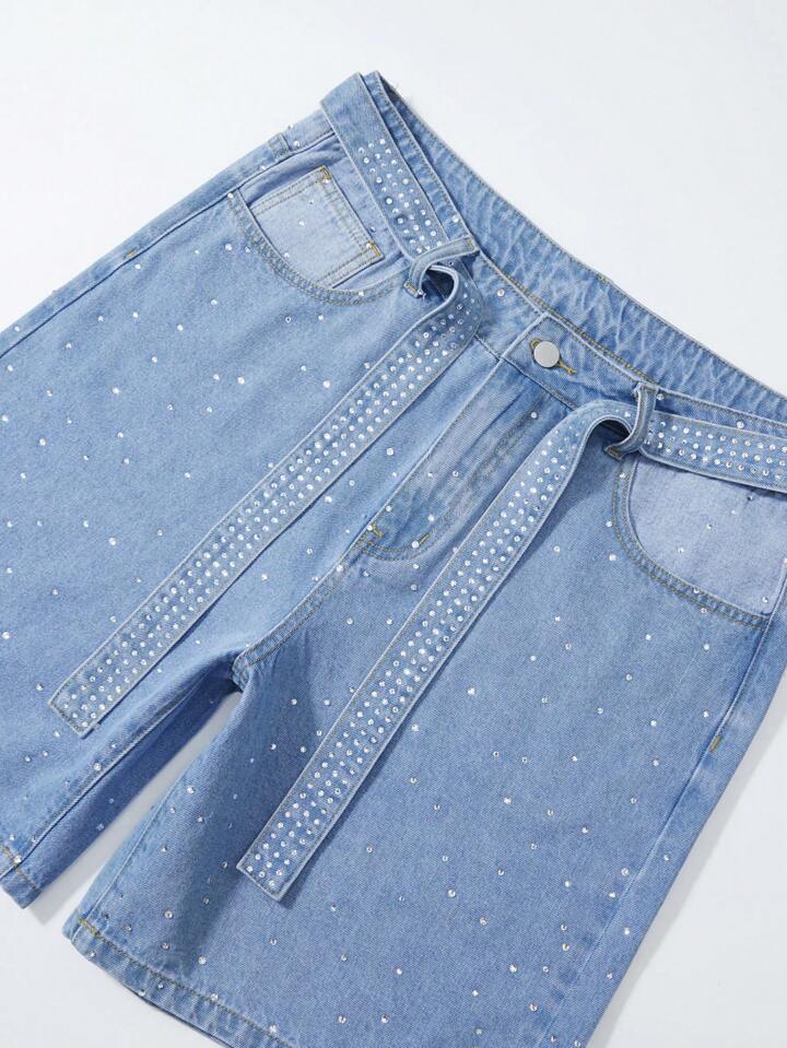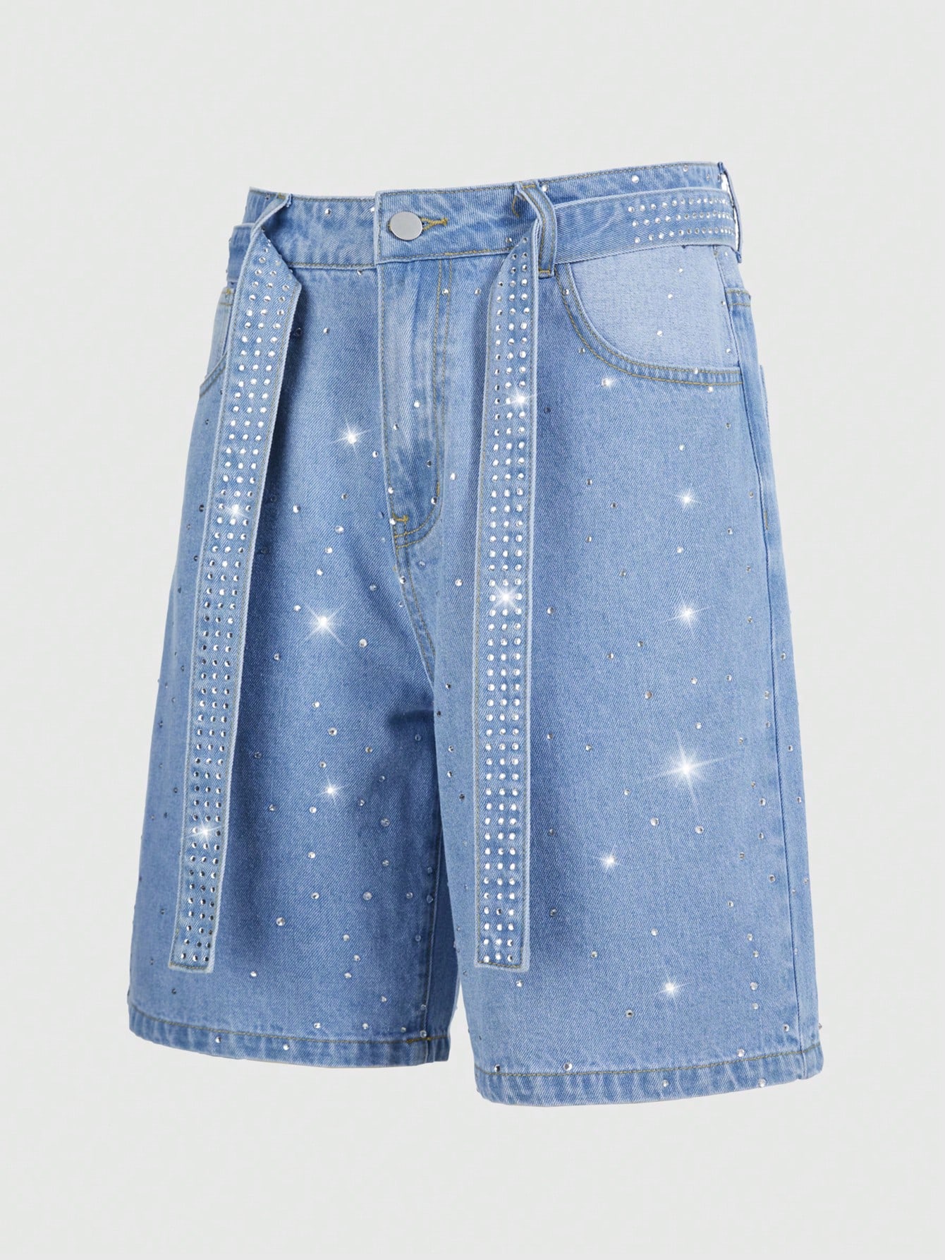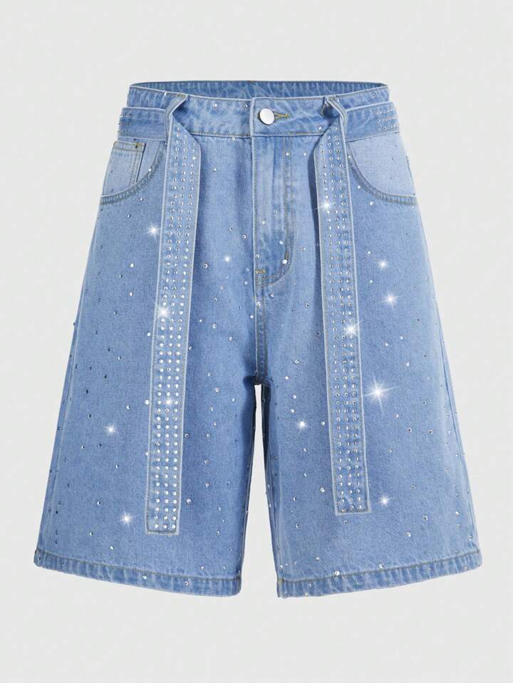 Street Life شورتات جينز للرجال كاجوال مغسول مرصع بالراينستون