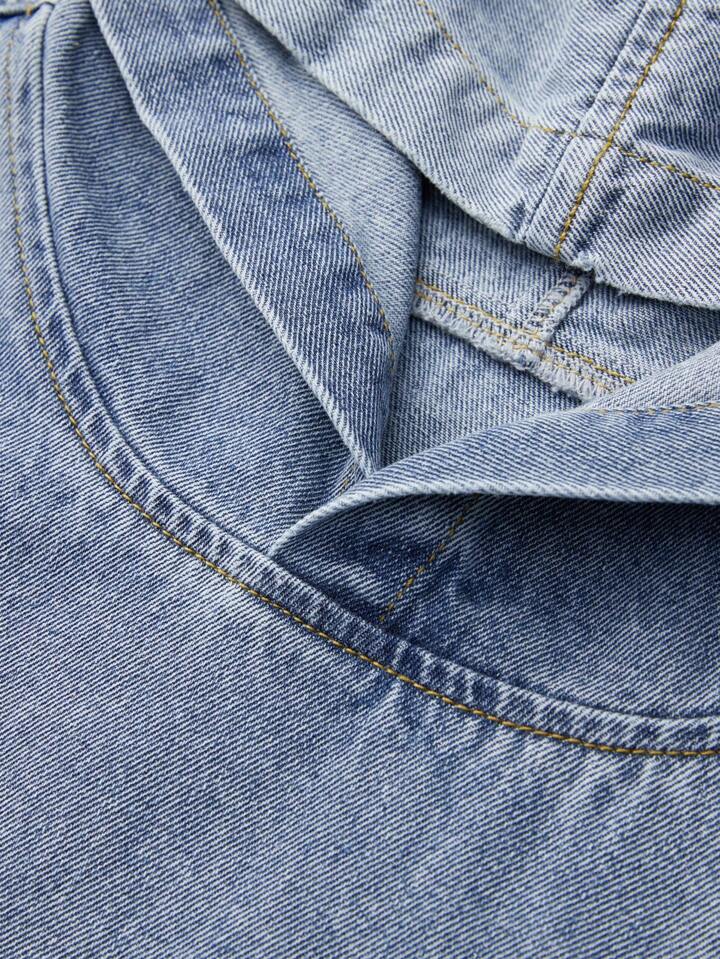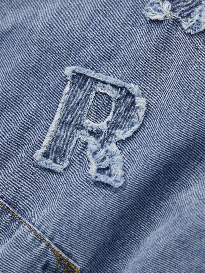 Street Life معطف جينز مطبوع بنجوم وحروف، كاجوال، مبطن بغطاء رأس، غسل بالماء، خريفي