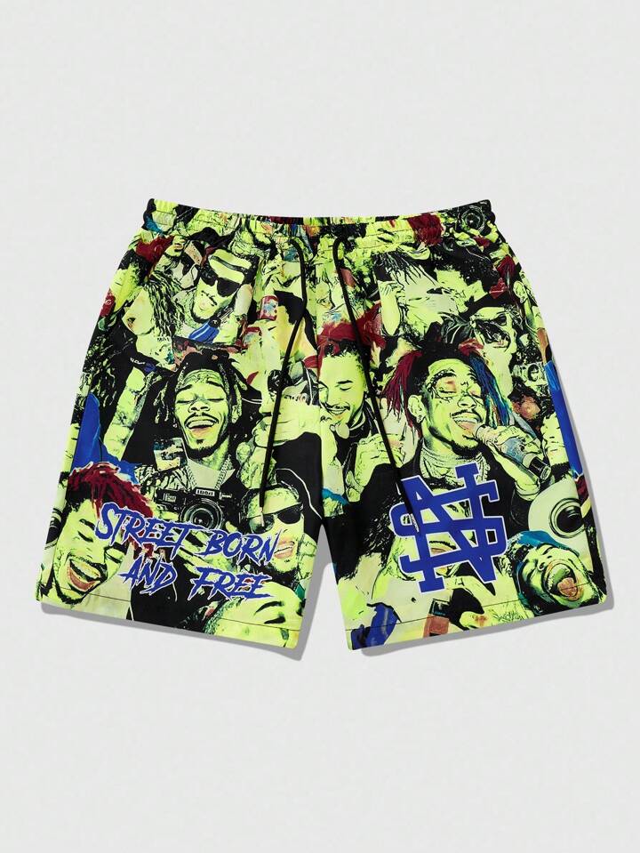 Street Life شورتات رجالي مطبوعة منسوجة، مناسبة للارتداء اليومي في فصلي الربيع والصيف