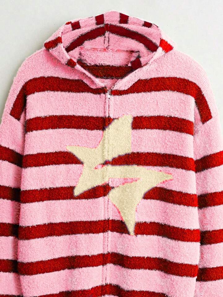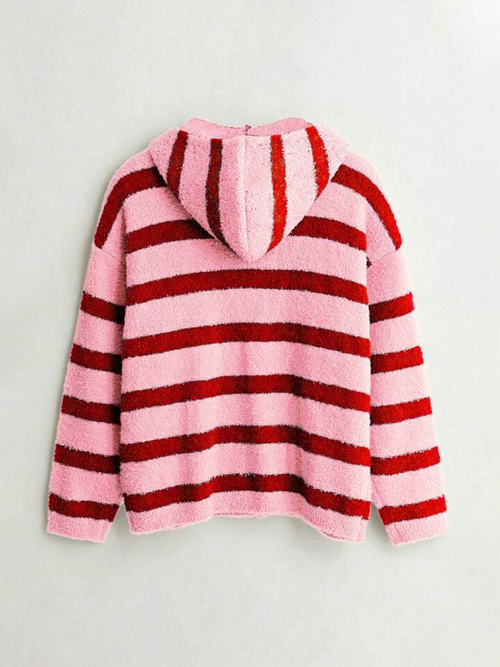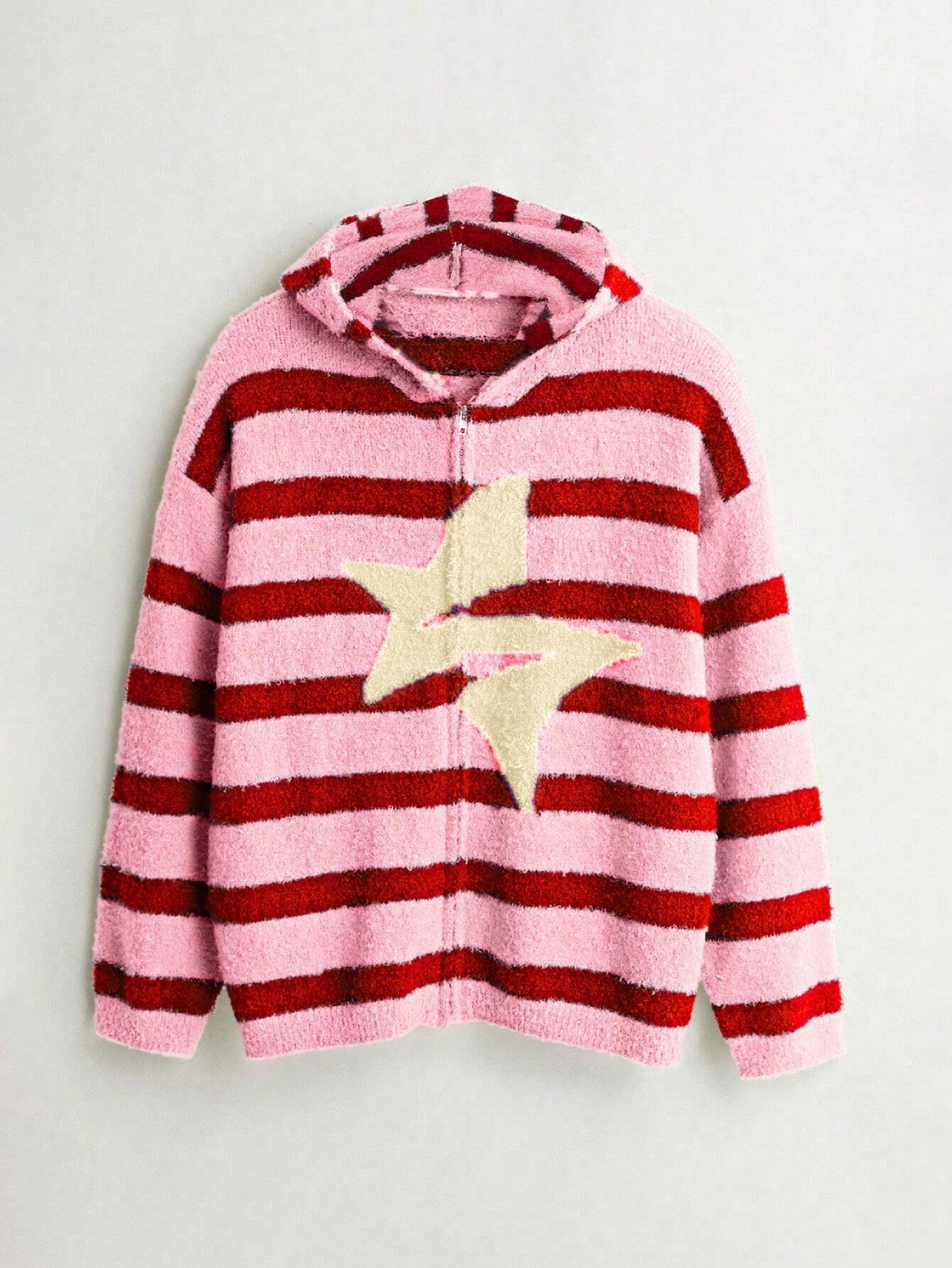 Street Life كارديجان رجالي مقلم بألوان متباينة مع سحاب أمامي وغطاء للرأس