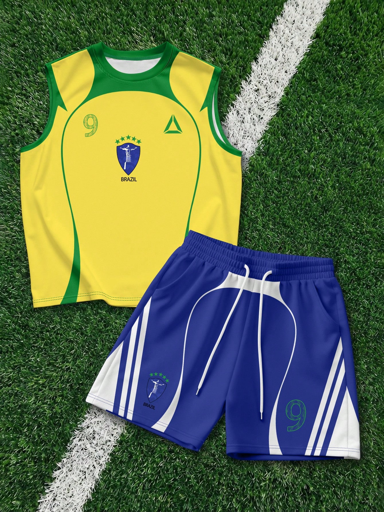 Street Life طقم ملابس علوية بلا أكمام بطبعة جرافيك متباينة وشورت بخصر رباط للرجال