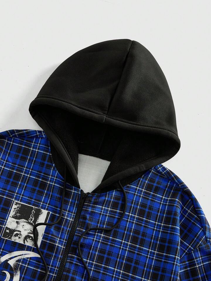 Street Life هودي رجالي مطبوع بنقشة مربعات ملونة وأشكال