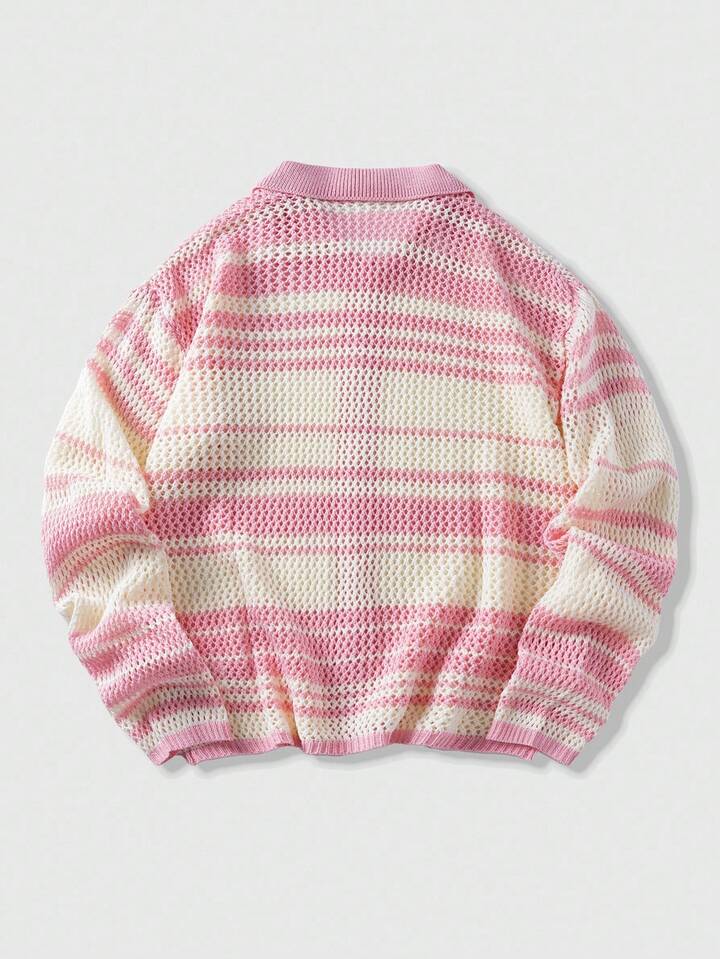 Street Life كارديجان كاجوال بياقة واحدة مزين بخطوط متباينة للرجال