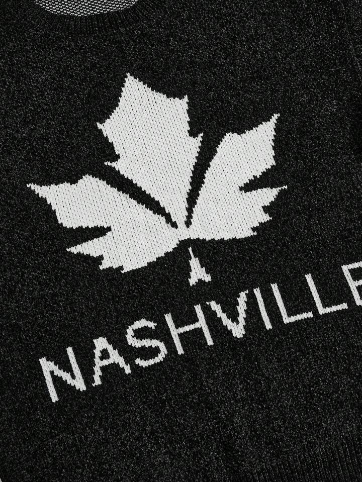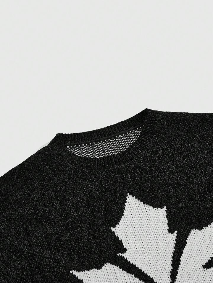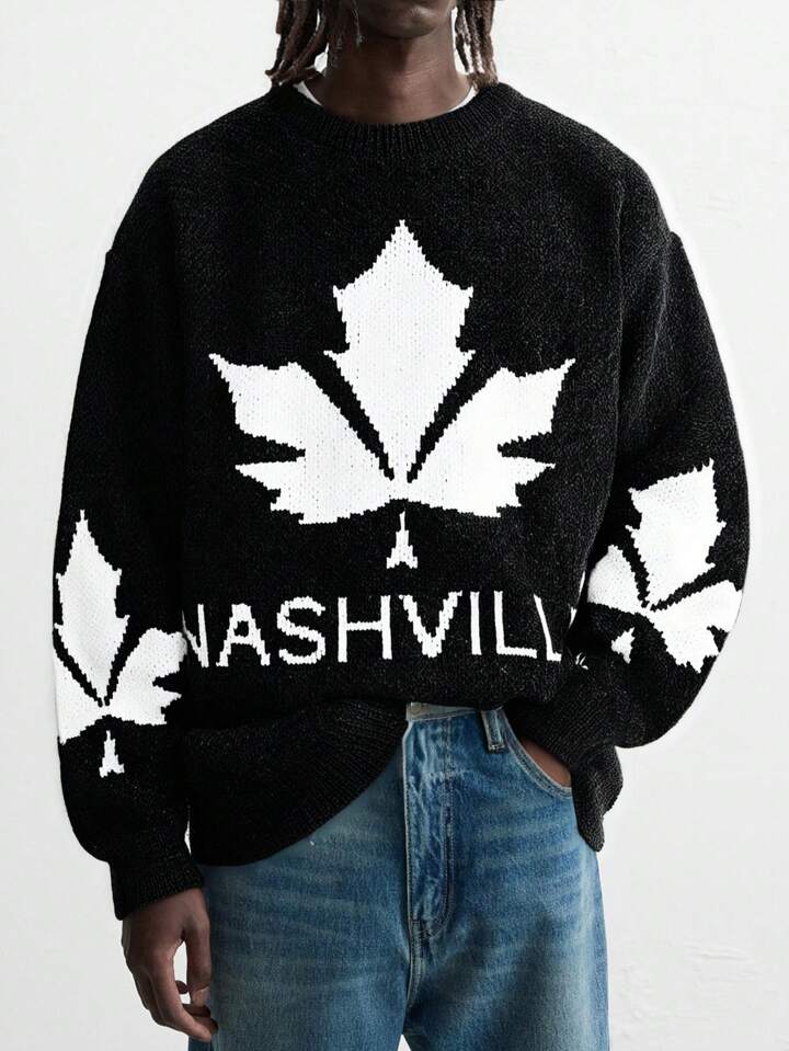 Street Life كنزة صوفية صوفية بطراز أمريكي عصري بنسيج مُجعد وبطراز أوراق القيقب على الرقبة الطاقمية للرجال