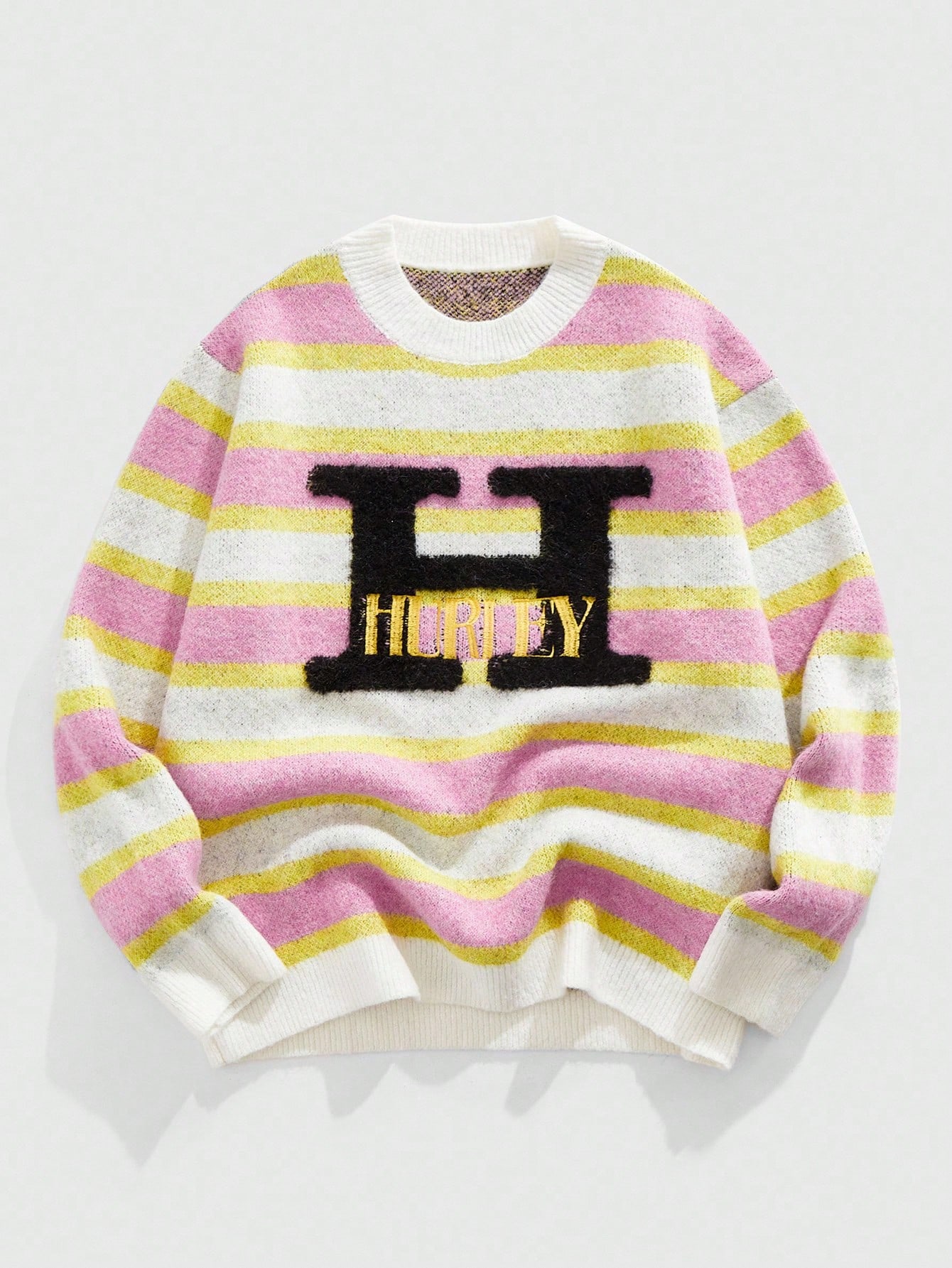 Street Life كنزة صوفية صوفية بياقة طاقم متعددة الألوان مخططة بطراز الشارع، خريف وشتاء