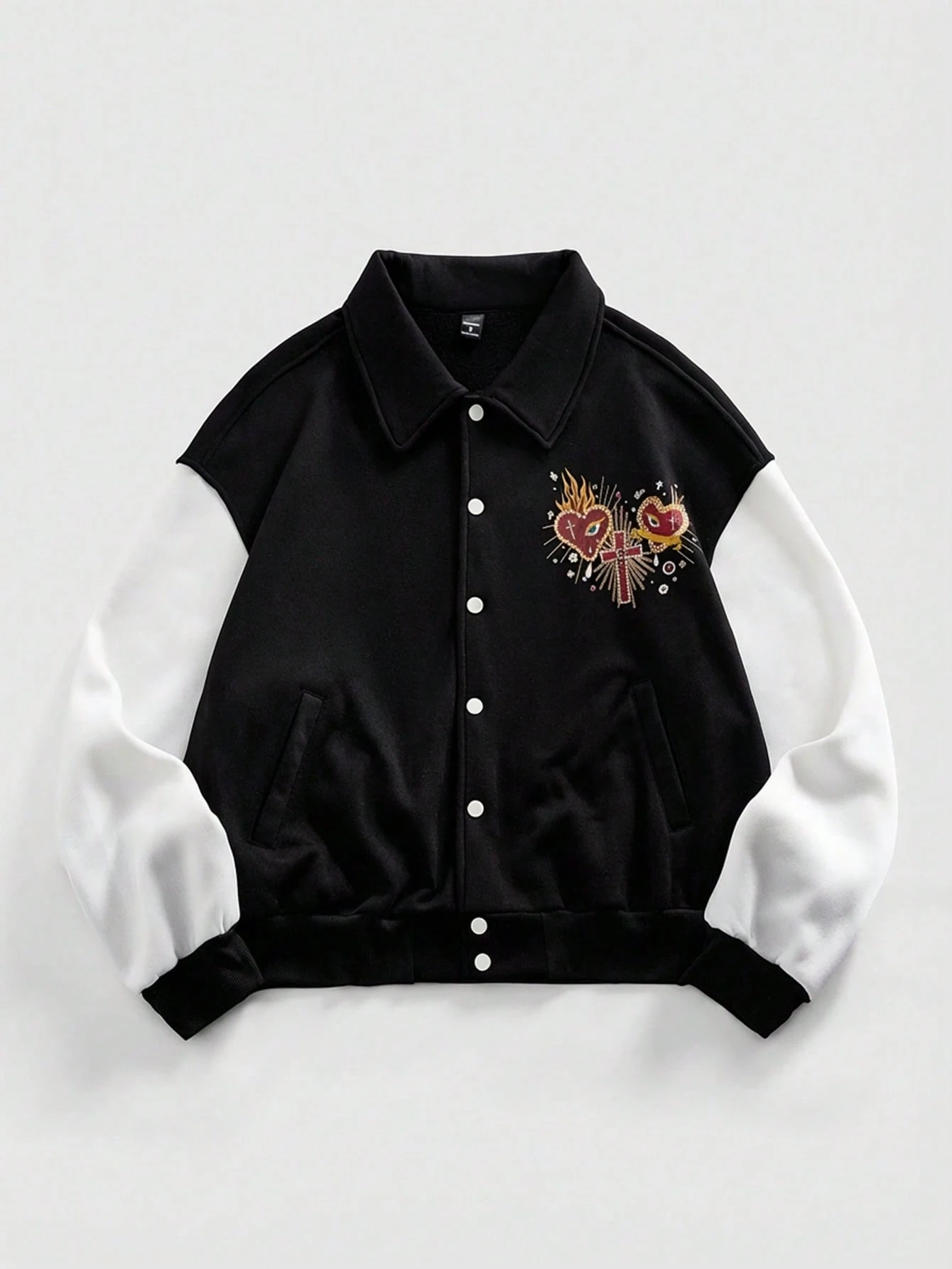 Street Life جاكيت كاجوال طويلة الأكمام مطبوعة بالصليب والقلب