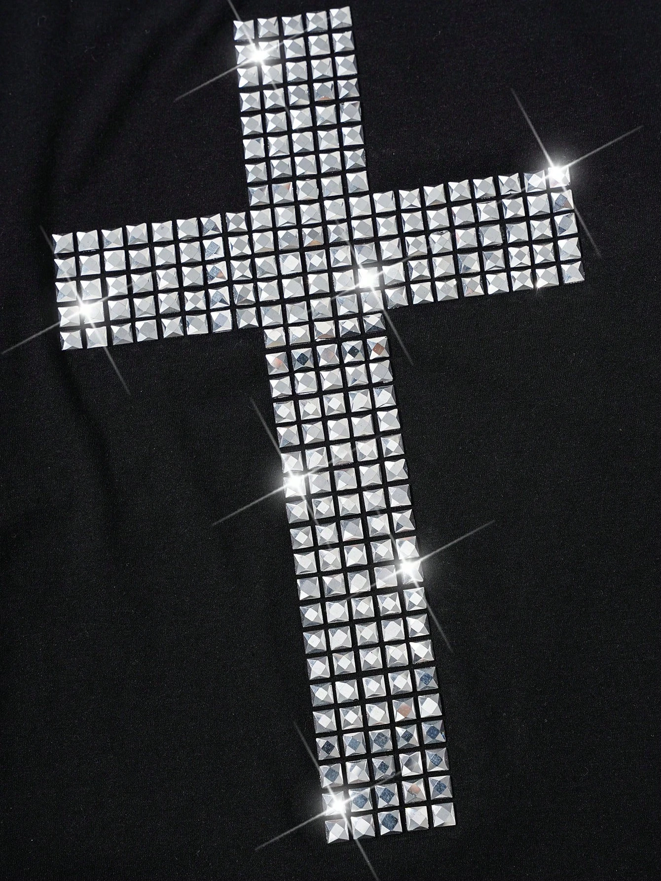 Street Life تي شيرت رجالي كاجوال بنمط صليبي بفضفاض وأكمام قصيرة