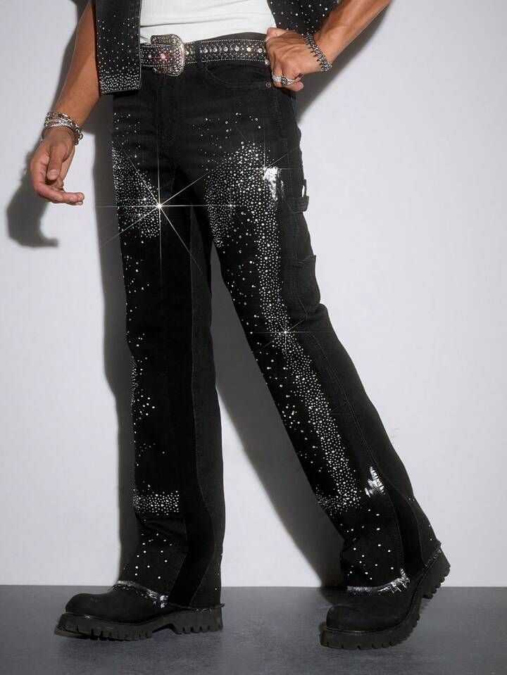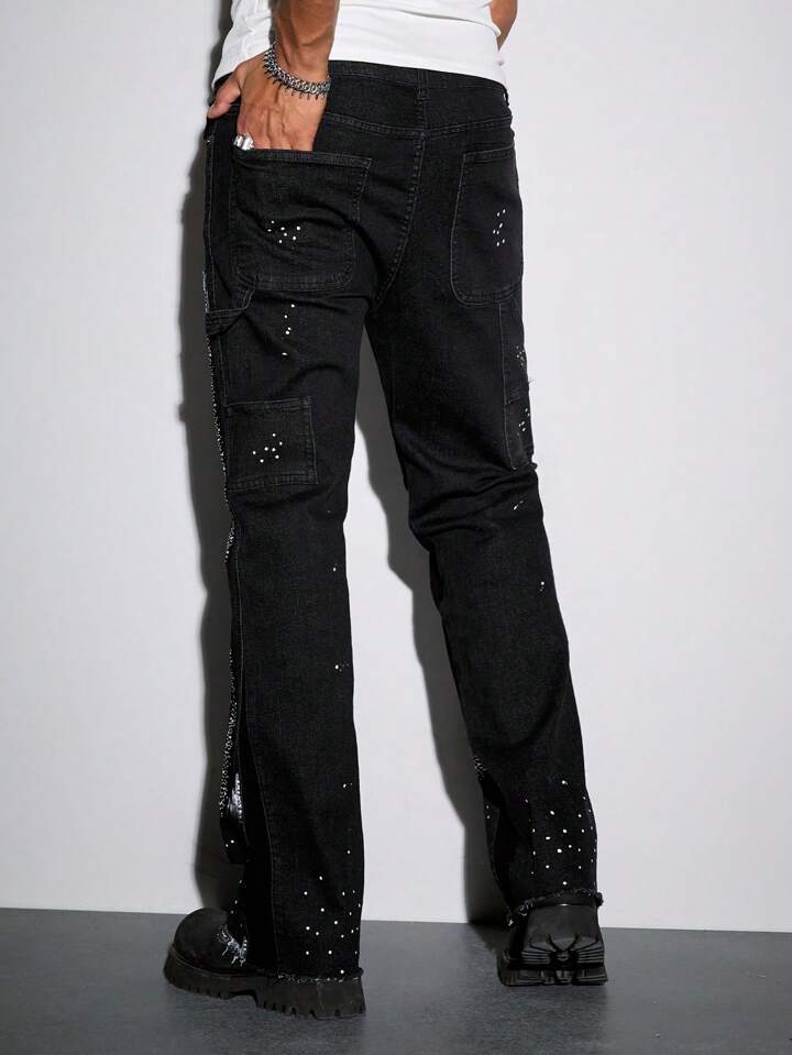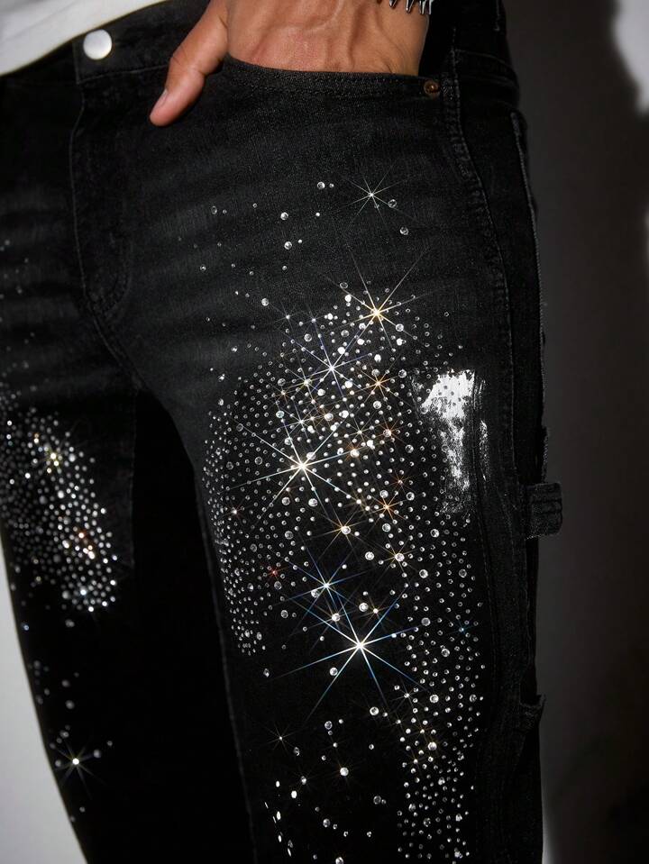 Street Life جينز كاجوال يومي للرجال مع بقع بلورية على جيوب