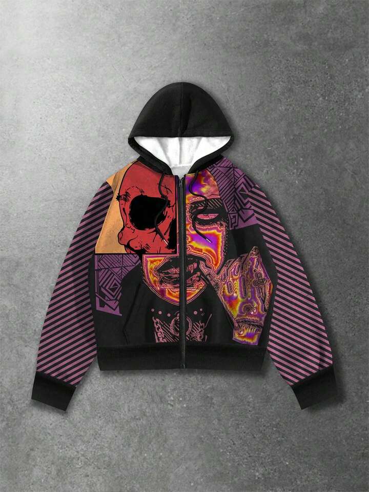 Street Life بلوزة رياضية رجالية مطبوعة رقميًا بطبعات داكنة مع سحاب