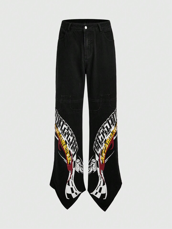 Street Life جينز مطبع بعنصر سباق الرجال المفكك، ملابس الشارع الصيفية