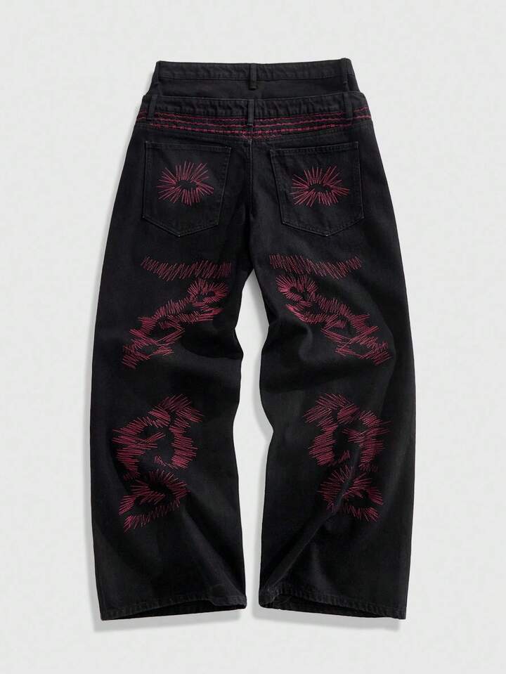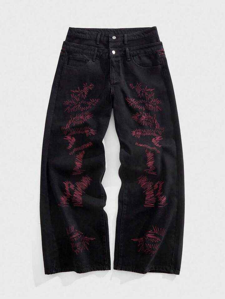 Street Life بنطلون جينز رجالي فضفاض بجيوب وخصر مزدوج