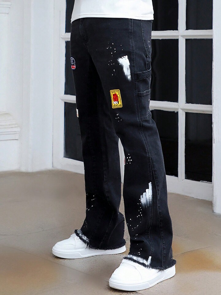 Street Life سراويل جينز رجالي سوداء ممزقة مطرزة