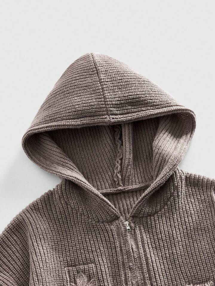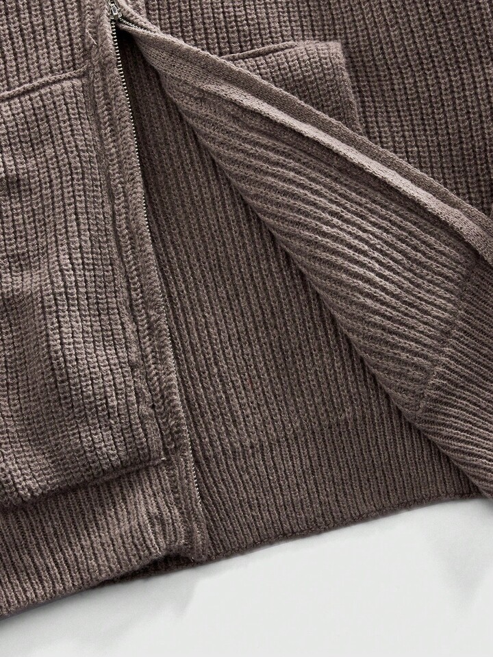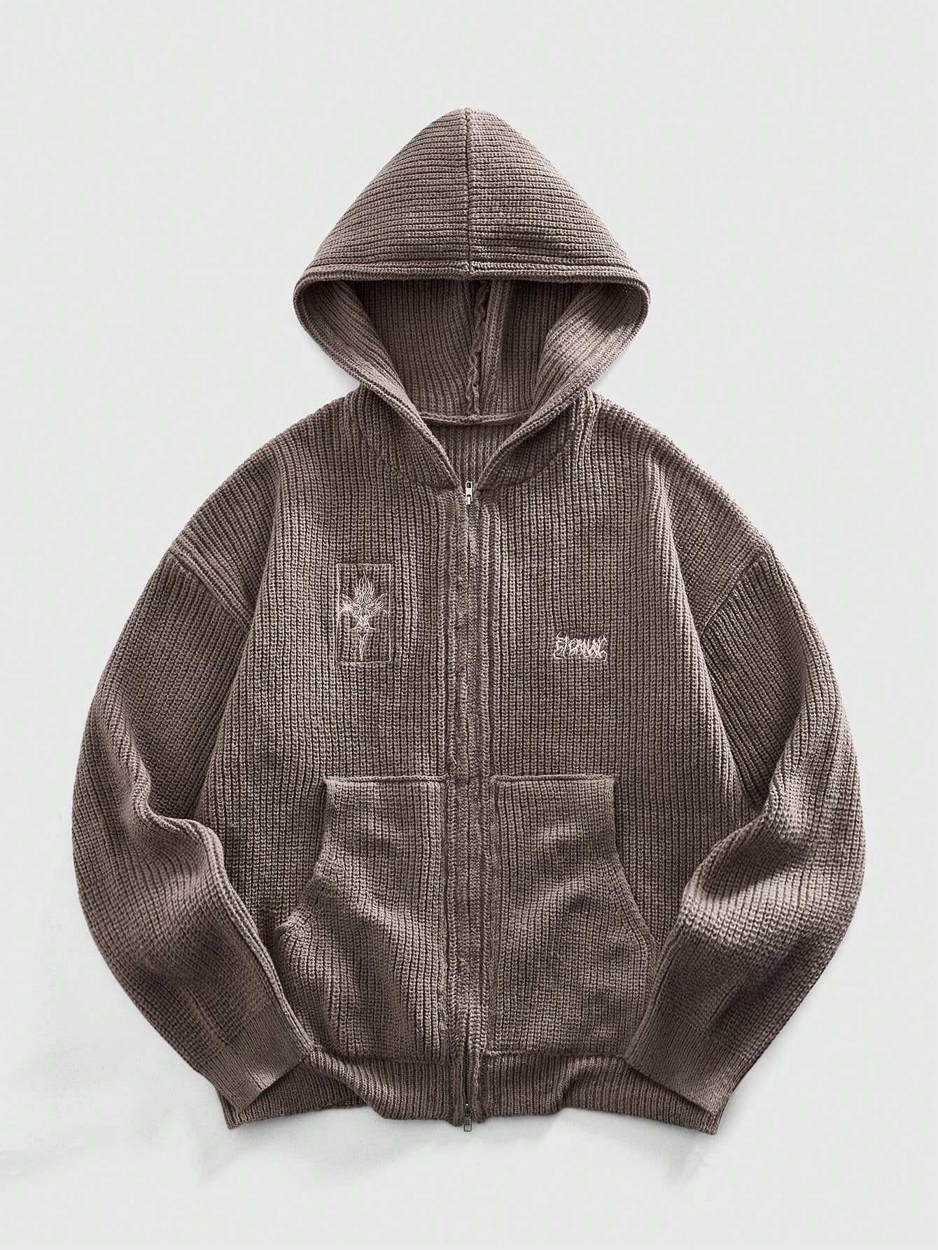 Street Life كارديجان محبوك بأكمام طويلة وسحاب وجيب مطرز للرجال