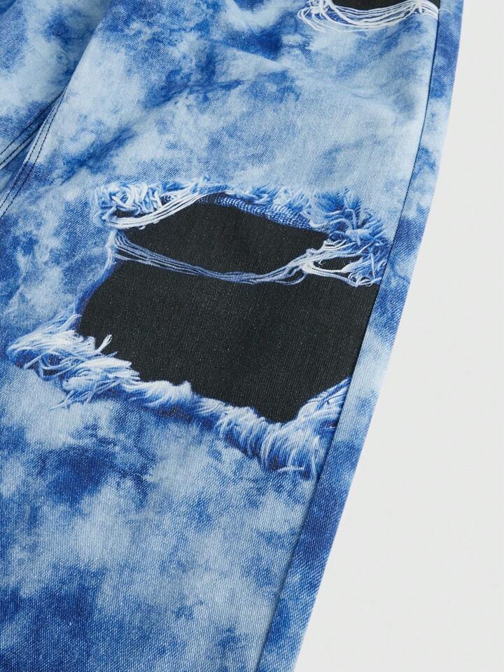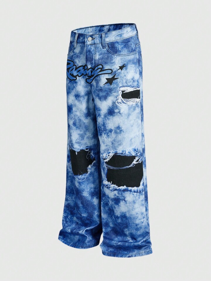 Street Life بنطلون جينز للرجال طباعة رسائل بطريقة الصباغة