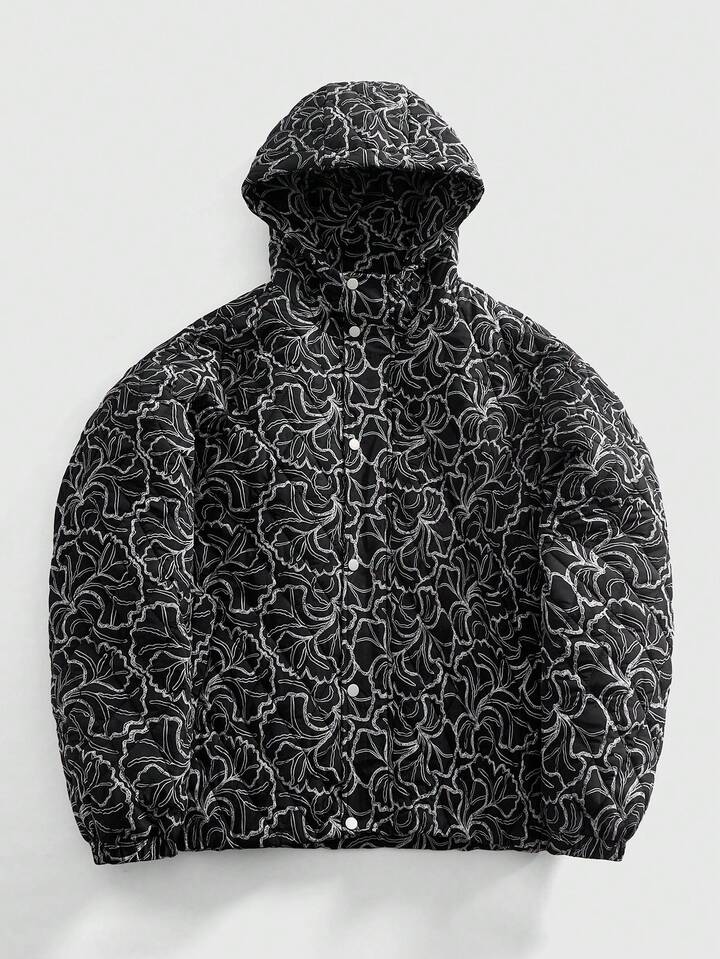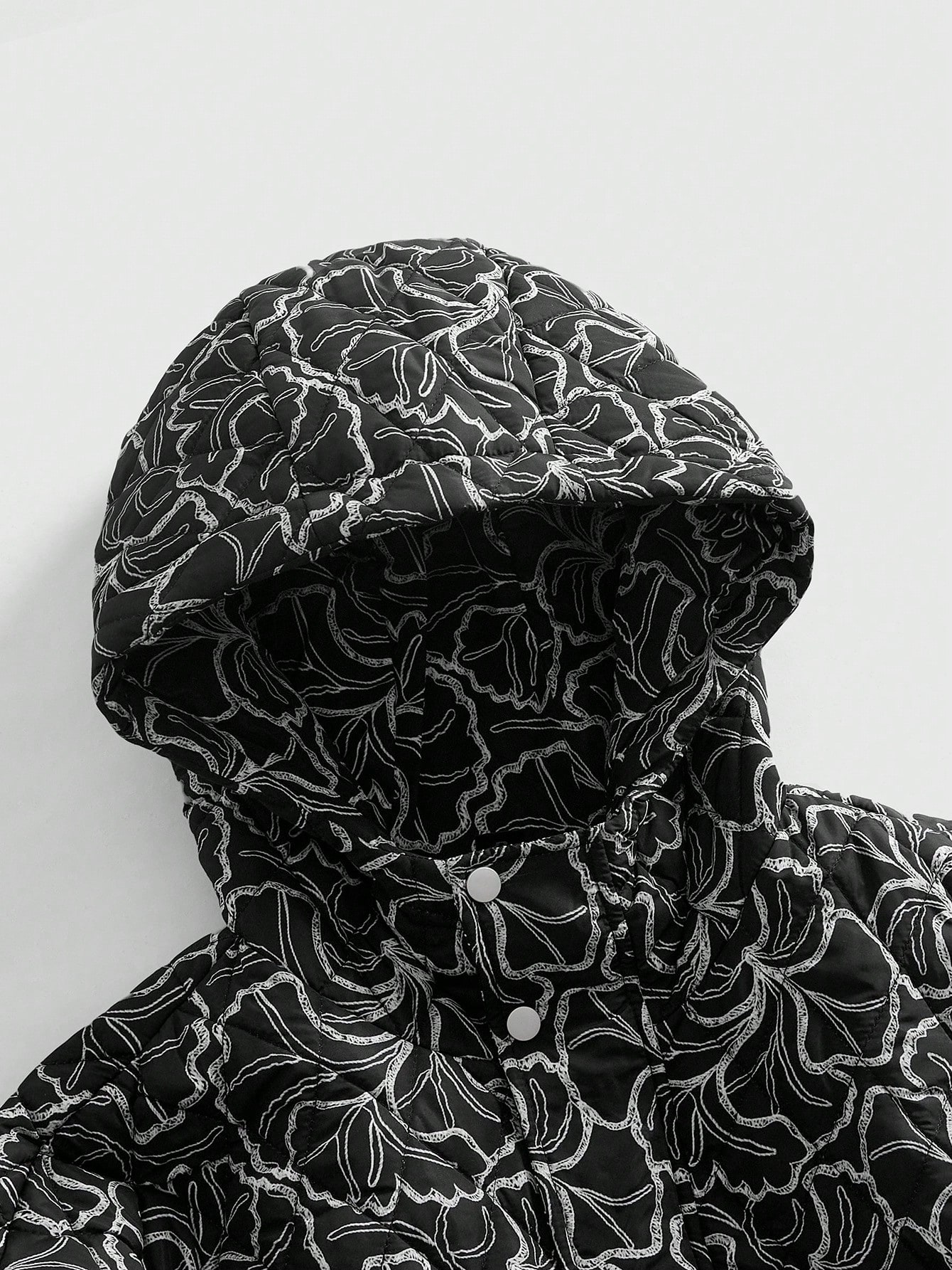Street Life معطف مطبوع بالكامل بتصميم عصري مع كابوت، شتوي
