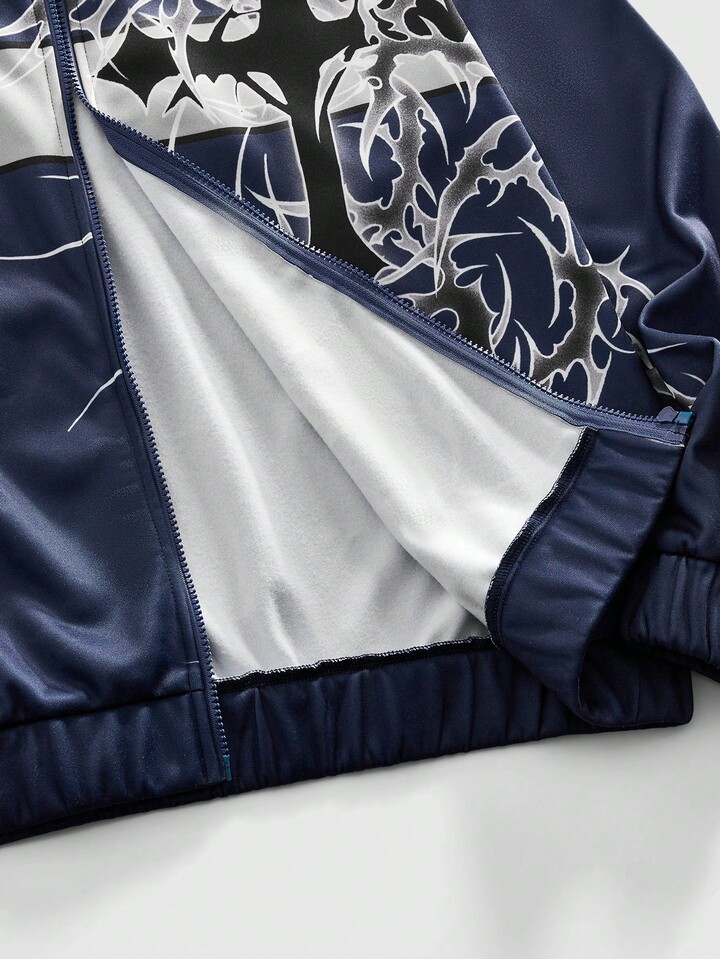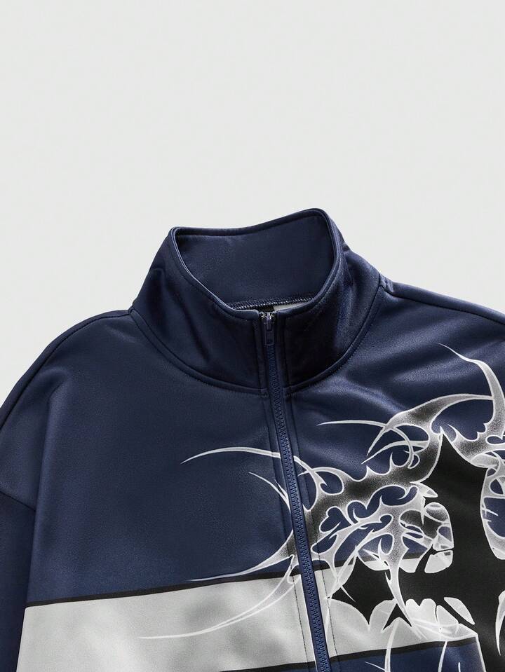 Street Life بلوزة رياضية كاجوال مطبوعة مزودة بسحاب للرجال