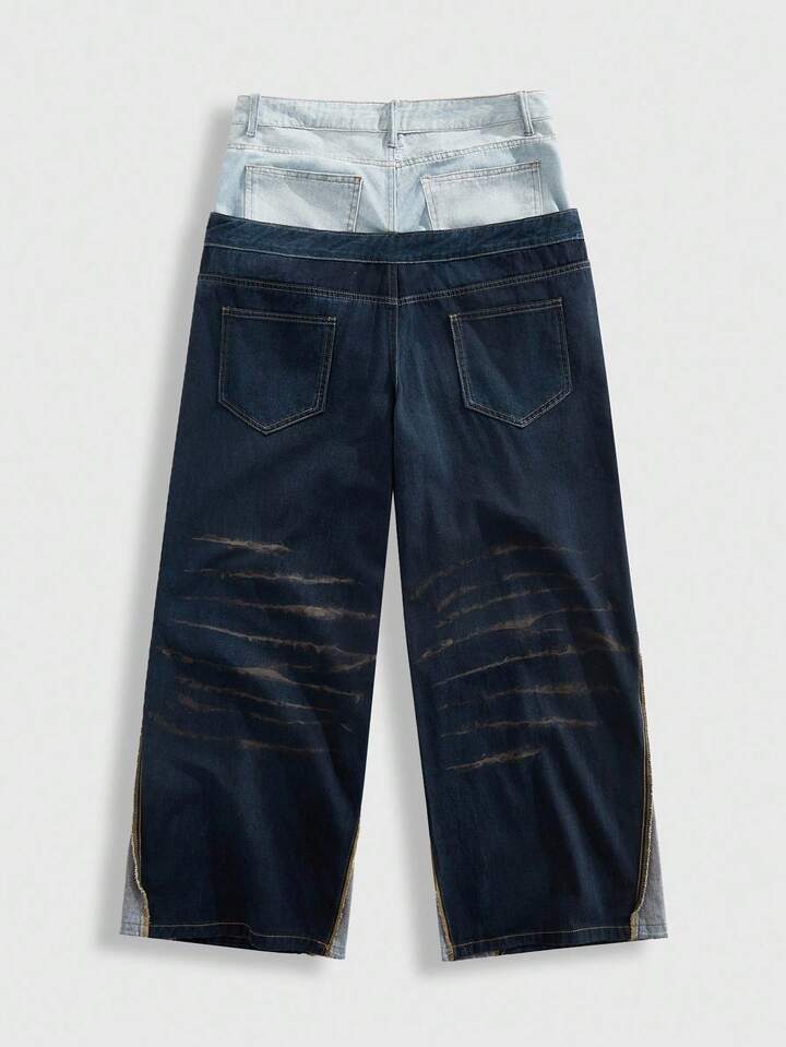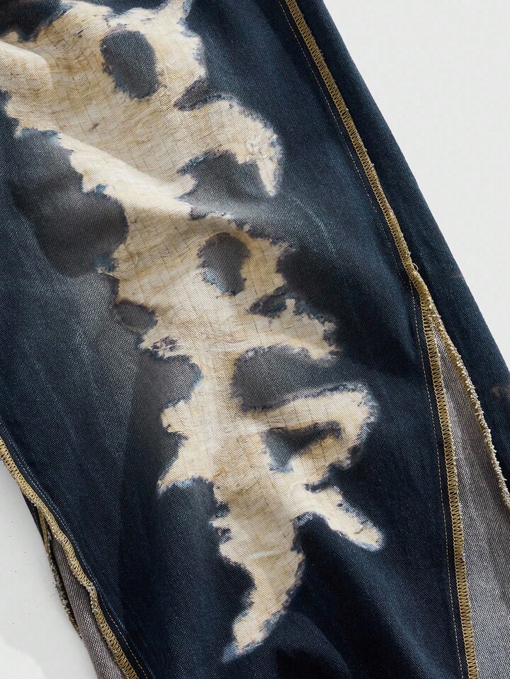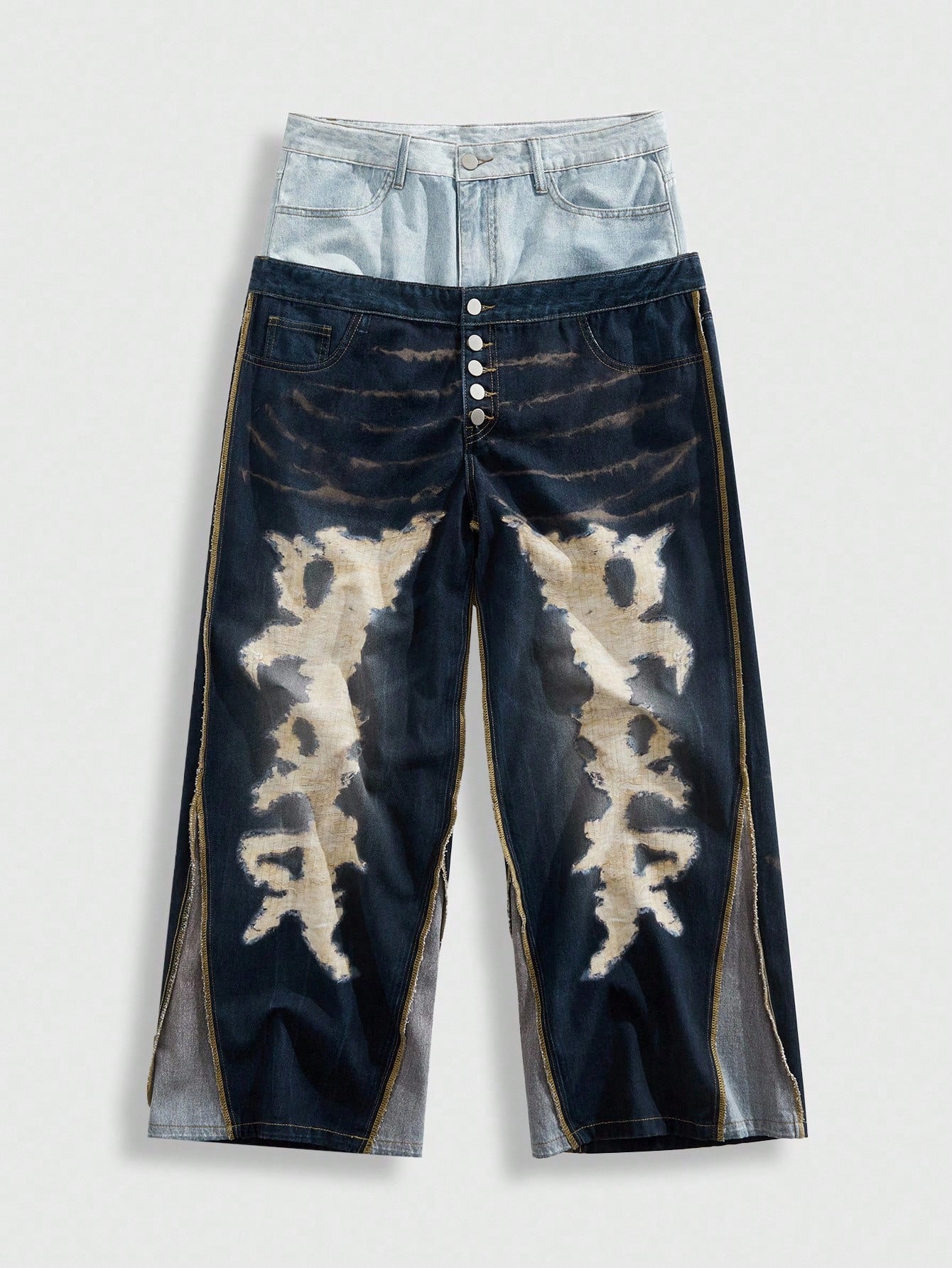 Street Life بنطلون جينز رجالي عصري مطبوع بالكامل مع خصر مزدوج الطبقة